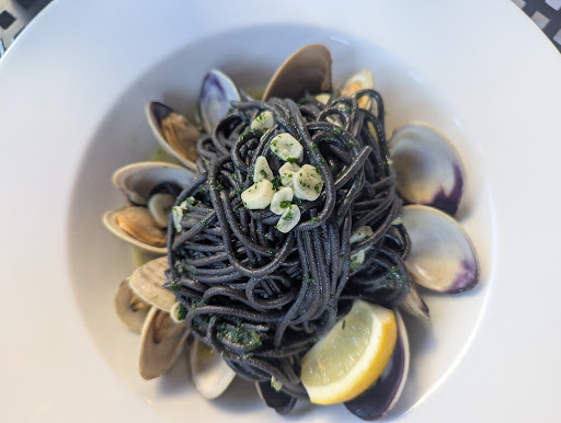 Although the obscene prices left a bad taste in our mouths, decided to stay and order. When ordering the special Lobster Ravioli ($30) we were informed this was an appetizer and that an entré-size was $50. We still ordered and looked forward to our food and wine. However, after taking the first bite, there was nothing more to say than that I was beyond disappointed. I had been served boxed, dried spaghetti with jarred sauce, two basil leaves, and a ball of low-quality burrata for $30.