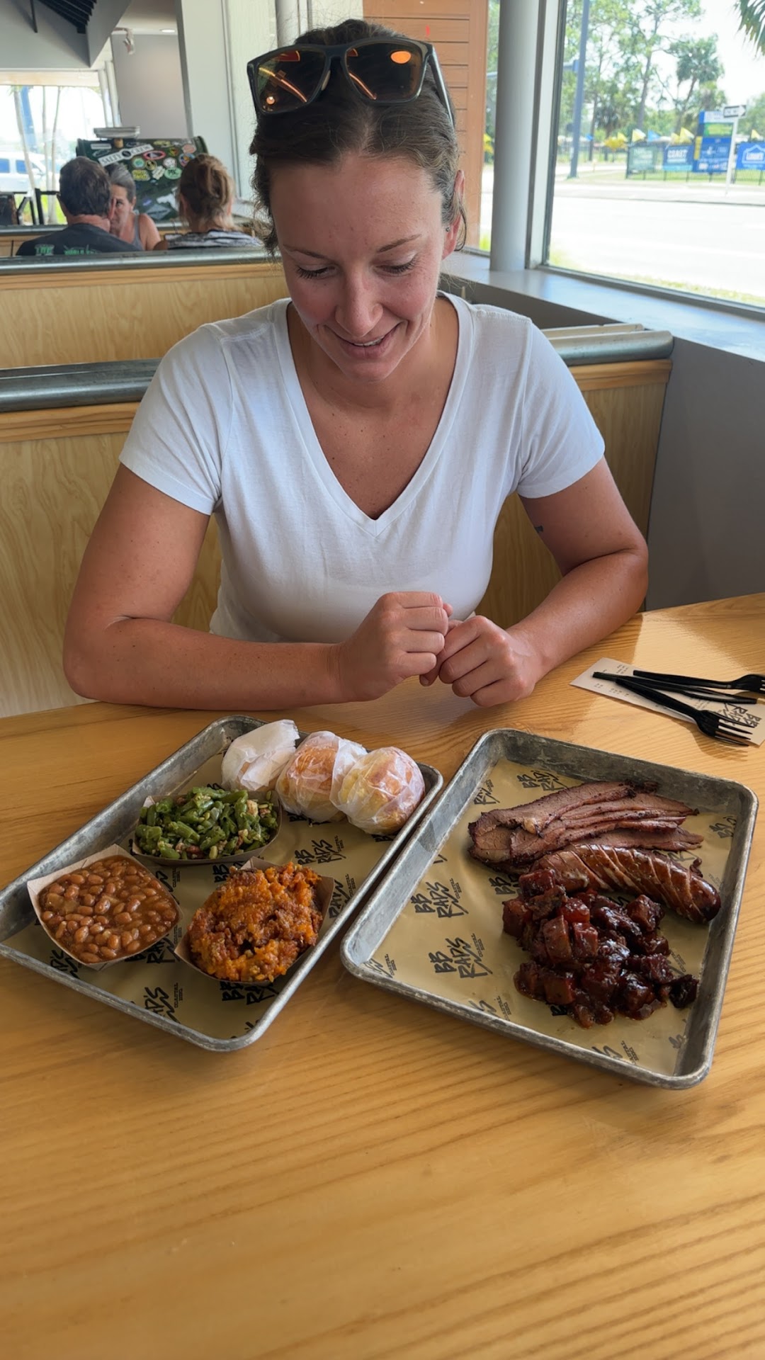 Their cornbread is ridiculously delicious cuz it's so fluffy& u can taste the jalapeño. The green beans were actually better than any other bbj joint cuz they still had a bite & were seasoned perfectly. Both corn& sweet tater casserole were on point. Fried okra is was prob best we had anywhere due to the light breading& perfect frying temp, nOt oily- just crisp.