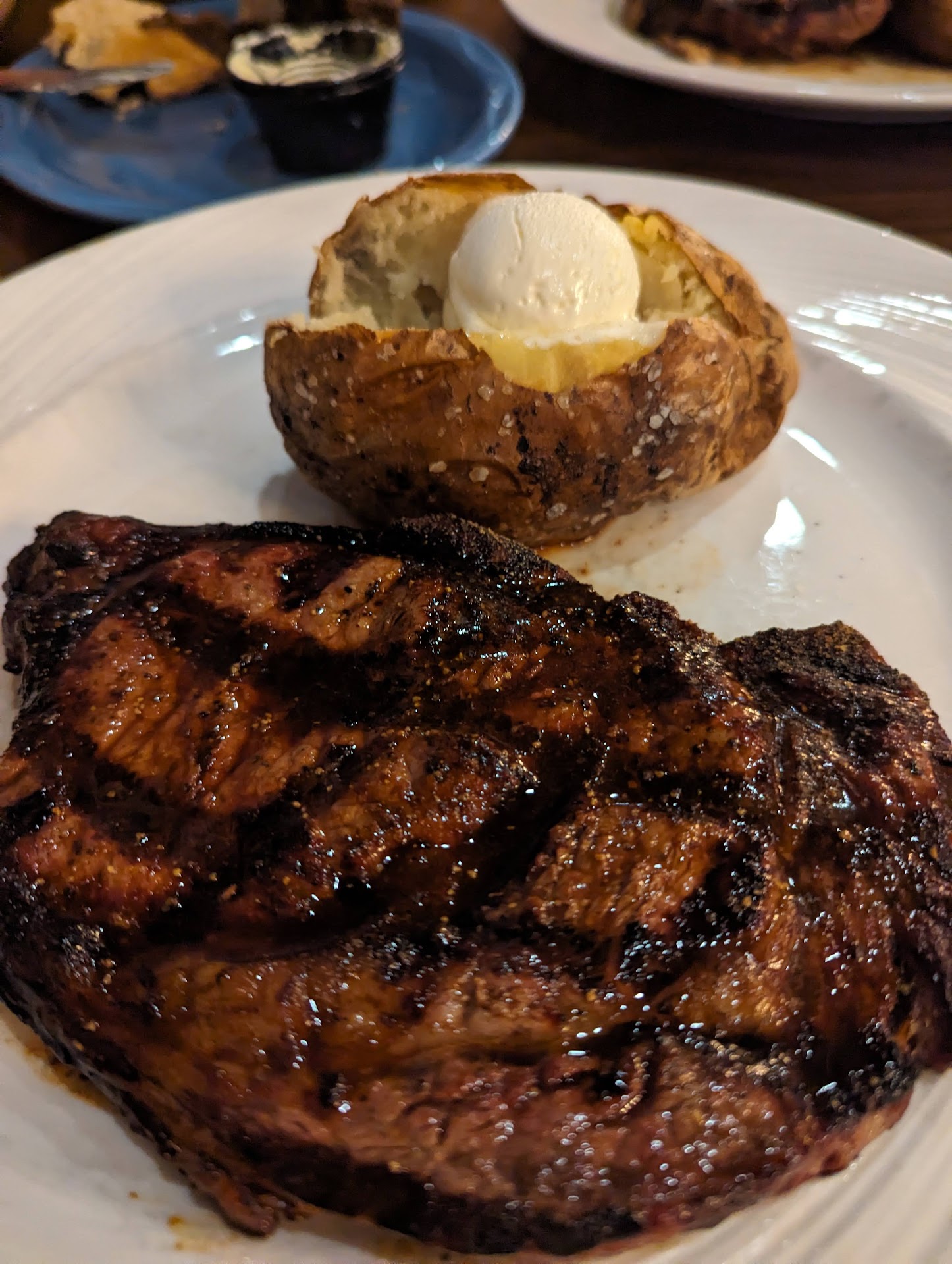 Everyone ordered steaks for their entrées. They were all ordered at different temperatures from med-rare to med-well and every one of them came out perfectly cooked. The streaks were well rested before they came to the table so they were super juicy. The flavor was spot on! No steak sauce was needed by anyone. Everyone loved the flavors of both entrée and side dishes.