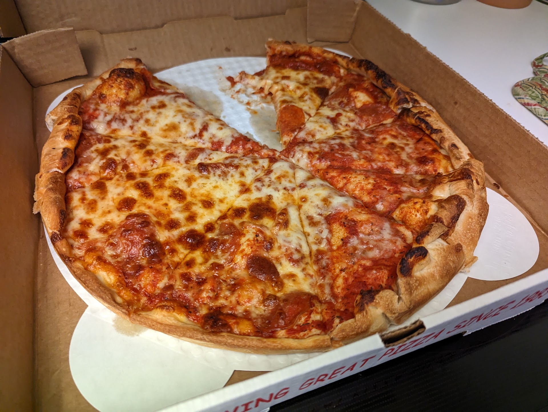 Read moreFollowing a full day at softball camp, tired, and hungry, we searched the area for an eat-in restaurant. Pure happenstance led us to this little gem of a pizza joint. Nostalgic atmosphere but top notch service from all. The wait staff was attentive, friendly, and at the top of their game. We ordered mozzarella sticks, and the dipping sauce was perfectly chunky and flavorful. We had a large pepperoni pizza; the crust was perfectly crispy yet soft. The marinara sauce wasn't acidic. It was a perfect amout evenly spread pver the dough. The cheese was definitely cheesing. Our daughter, who rarely eats much, had FOUR pieces. Our other daughter had the Kelsey burger. She raved over each bite. Then the waitress said, "Can I get you anything? Mayo or honey mustard?" I thought our daughter would hug the waitress. Apparently, that took the meal to the next level. She can't eat anything without honey mustard. She said, "This is homemade. It's gotta be because it's perfect." We've never heard her go on and on about a meal, especially between each bite. She even said she could kiss the chef. She shared her fries, and both of our girls said, "Best ever, they should give a take-home box of just fries." 10 out of 10 rating from this...