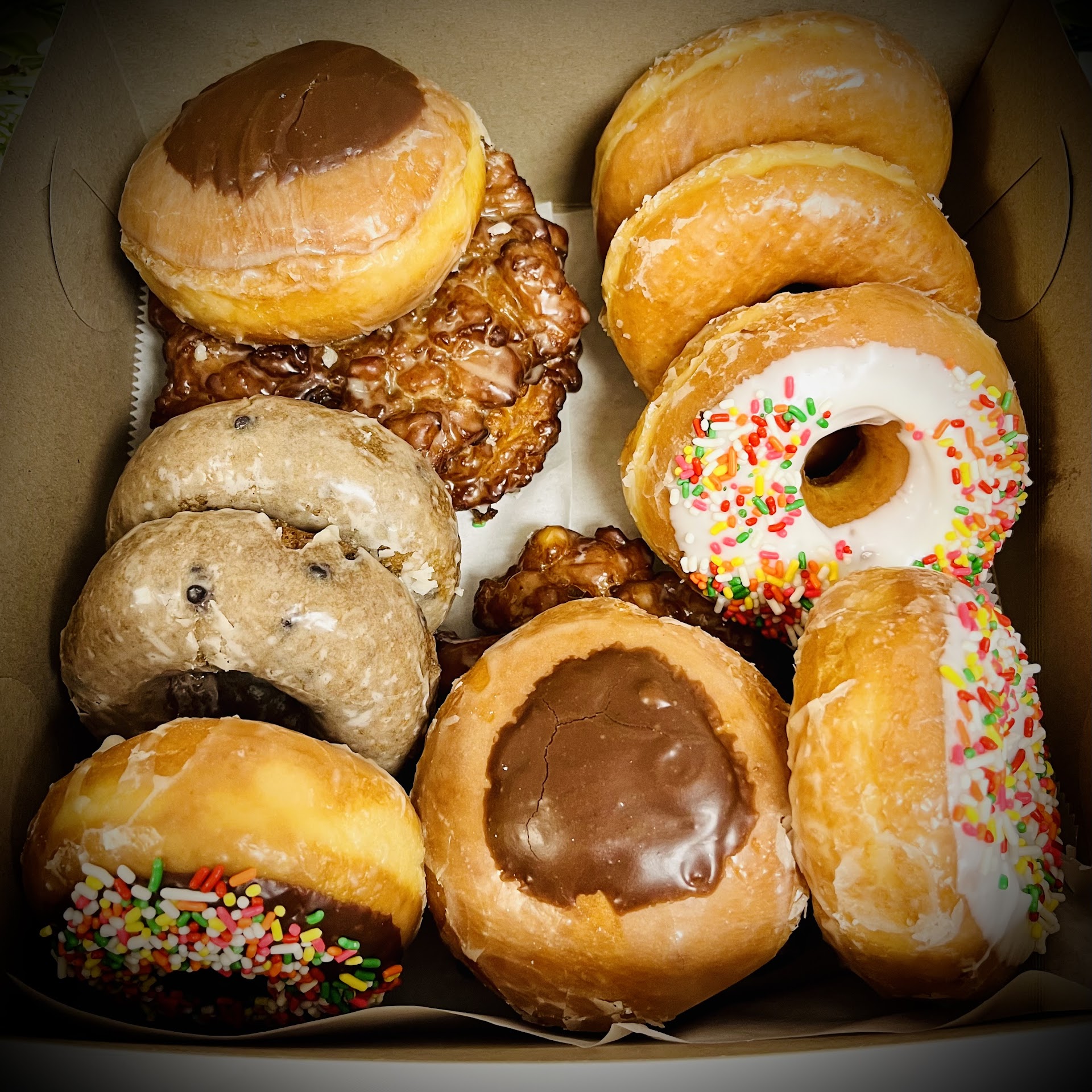 Plain Cake Cherry Cake (Glazed) Blueberry Cake (Glazed) Red Velvet Cake (Glazed) Coconut Flake Cake Toasted Coconut Flake Cake Cinnamon Cake Cinnamon Cake (Powdered) Cinnamon Cake (Glazed) Sprinkled (White Frosting, Glazed, and Raised) Kim’s Special (Raised and Filled - Very Popular) Eclair Sugar Doughnut Chocolate Chip (Chocolate Frosting and Raised) Buttermilk (Glazed Cake) Glazed Doughnut (Raised) Boston Creme Canadian Creme (Powdered) Cinnamon Twist Chocolate Frosted (Glazed) Vanilla Frosted (Glazed and Raised) Maple Frosted (Glazed and Raised) Bavarian Cream (Powdered) Lemon Filled Jelly Doughnut (Powdered and Raised) Lemon Filled Jelly Doughnut (Glazed and Raised) Blueberry Filled Jelly Doughnut (Powdered and Raised) Blueberry Filled Jelly Doughnut (Glazed and Raised) Raspberry Filled Jelly Doughnut (Sugared and Raised) Raspberry Filled Jelly Doughnut (Glazed and Raised) Chocolate Cake (Glazed) Double Chocolate Cake (Chocolate Frosted and Raised) Chocolate Chip Cake (Chocolate Frosted but not Glazed) Chocolate Frosted Cake (not Glazed) Apple Fritters Glazed...