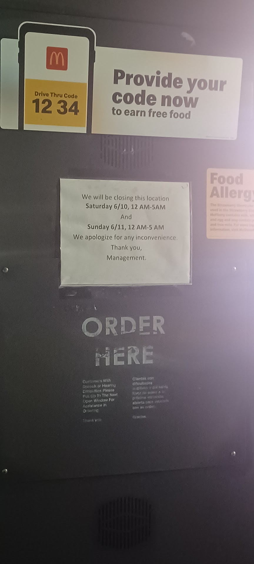 Upon arriving at this Titusville location McDonald's and walking in the door I noticed a backup of customers many of which their facial expressions appeared not to be positive. As I intended to place an order at the counter I waited for over 5 minutes and nobody came and another customer told us that nobody is coming up to take the orders in the back I could clearly see and hear lots of confusion chaos and just a general disarray of any organizational skills or planning at all. Cursing and swear words were very clearly heard by not only several children in the front of the building lobby area but also by customers waiting at the counter and summit their seats. There were two particular staff members that did stand out did not get their names. The kiosk failed to give a receipt for my order. My food order took a very long time to get approximately 15 minutes. And I had to ask for my drink cup 4 times from the very rude, bad mouthed employee, who was wearing a yellow reflective safety vest, Was a relatively small order. During my visit to this location I noticed one associate a younger gal wearing a maroon shirt steadily on her phone instead of handling customers and she was in the cashier register area while on her cell phone. Another staff member was very rude insulting to all customers openly using curses and swears and profanity not only in general sentence structure but also directed toward an at customers as well. Once I got my food it wasn't even lukewarm when I said something through the pick up window The staff member answered and replies to me were very rude abrupt harsh and borderline insulting never been so upset or seeing as many customers upset with staff anywhere as I have seen at this Titusville location today. One woman was there with her small child and this woman has has denied condition she was treated poorly very rude she waited over 35 minutes for an ice cream sundae. Another elderly person approximately in her late '70s waited 45 minutes for a Big Mac order and was also spoken to very harshly very rudely by the McDonald's employees she was cursed at and there was just a lot wrong with this McDonald's today. I'm extremely upset as well as my child was with me a young 10-year-old girl or the curse words couldn't understand what we did wrong to these employees of a McDonald's to be treated so poorly I had no explanation to my child other than apparently these people are not happy. I will not choose to return to this McDonald's ever again and I will make sure that those I know are well aware of this location's poor services as well.. I feel this McDonald's always me the total of my meal today Not only for the horrible experience for allowing to have such employees on their staff, especially employees that behave in those manners, my mother has never even chastised me the way that these staff members chastised and swore and cursed at their customers today, And that's truly no exaggeration I hope the location has videos I hope the location can review these things and see their employees in action. When I ask the associate for a receipt for my order because the kiosk did not print one they simply did not know how said it would take an entire shift but then just 3 minutes later another customer who is very well dressed in office attire maybe office casual attire versus my blue collar attire also asked for a receipt for his order as he used the same kiosk that I had used previously, and he was given a smile and spoken to very politely and they worked very diligently to try to acquire his receipt though I believe the ultimate outcome was they were unsuccessful, the fact that they treated him so much differently than so many other people and that they work so hard for his request but yet mine was essentially ignored and treated rudely added to the list of very confusing and surprising happenings today at this McDonald's. I had to leave a one-star review because it wouldn't let me leave anything less otherwise...