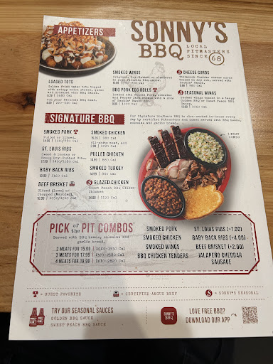 Read moreMy most recent visit has caused me to change my previous 5 star review to just 1 star. I've never walked out of a Sonnys before my food came, but I did today. It was over something that could have easily been addressed. We waited a few minutes to be seated, which was unusual. There were several employees standing around chatting without giving my family any acknowledgment. We were seated at a table that was very sticky. The menus were sticking to the table. My husband asked the server to wipe the table. He also pointed to a spot with visible sauce on it. She said "oh that little spot," and wiped it with her finger and continued with, "I don't have a towel. What do you want to drink?" She brought the drinks, didn't wipe the table. After the server left, my husband asked another server if he could speak to a manager. A manager comes to the table, and as we are trying to explain what our issue is with the table, the server comes to the table and starts arguing with us in front of the manager and other customers. That is the real issue here. The table could have been wiped, but instead of just doing that to begin with, the server made it an uncomfortable situation. It was inappropriate and rude. We left the restaurant because we were out as a family trying to have a good time, not deal with a rude and argumentative server. That would have been a complete waste of money. We love Sonnys but won't be back for...