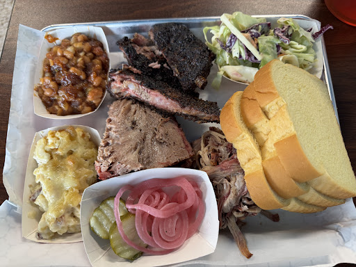 The brisket was delicious! I didn’t use any BBQ sauce although their sauces are good. The burnt ends were good as well but they needed to be warmer as in temperature. Mine were barely lukewarm. I was disappointed with the pulled pork. I found it needed flavor and salt. Same thing with the dirty rice which was missing seasoning and salt. It was also a bit watery. The beans are hands down my favorite side. And my son enjoyed the Mac and cheese. Don’t skip the house made pickles and pickled onions. They offer 2 sauces one of which is mustard based. Both are good.