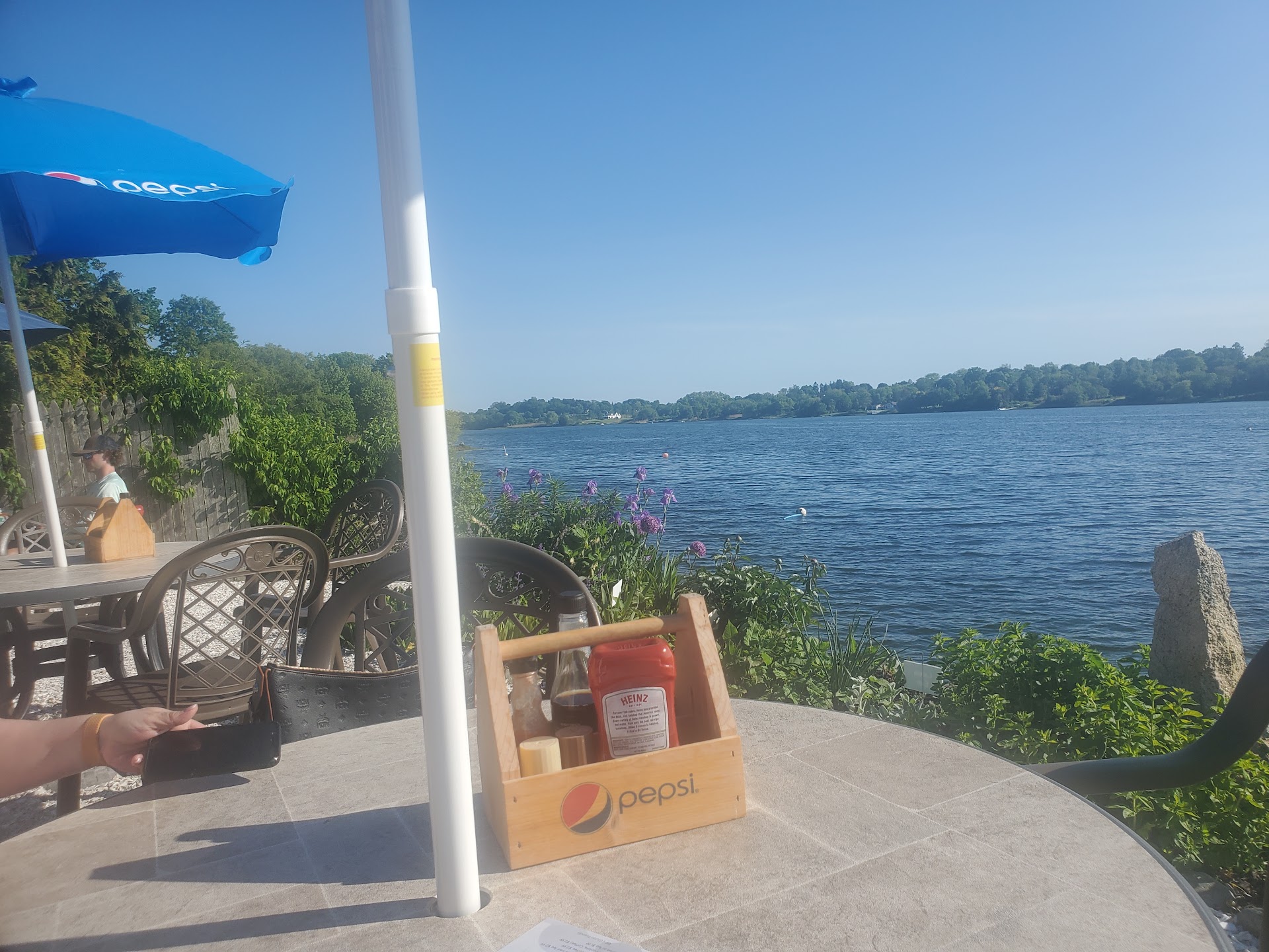 Read moreWithin the last month I've been here twice. The first time I was alone and sat under the tent because it was a little too chilly out. There were some hearty souls dining outside and there is a inside dining area as well all with full service. They also have a takeout window with six or eight picnic tables in a row on the waters edge to use when getting takeout. They are covered by a wellbuilt wooden carport type structure which provides great protection from the sun and rain. On to the food. The first time I had the chowder (New England style) and some clam cakes. They were both very good. The chowder was flavorful with the correct ratio of broth to solids. The clam cakes were a little bigger than golf balls with the little nubs and such that I associate with a true clam cake. Inside the clam cake were chunks of clams which is what I like to see. As I was enjoying this meal a waitstaff member walked by with this incredible looking chowmein sandwich. It was such a huge looking portion with a rich gravy cascading down the sides that I immediately felt buyers remorse. On the second time I had my dog with me so I ordered at the takeout window and asked if my dog was ok to be with me at the picnic tables. They said no problem and asked what kind of pup I had and told me to grab a dog bone out of the jar for her. That sold her on the place. So anyways, I digress. I ordered the chowmein sandwich, surprise surprise. This had been floating around in my mind since I'd seen it. Now which one to get. They have plain with no meat or you can add on chicken or beef. I asked the server which one was the most popular and they took a couple of seconds to answer which means they really thought about it before answering with chicken. Impressive waitstaff at a clam shack or anyplace these days. So when you get it to go it comes in two separate containers. One is a foot long or so by like a half a foot filled with the dry noodles and a fresh bun. The other container is close to a quart in size containing the chicken and vegetable gravy. This is a two person meal. I bought half home with me. It tasted great. The chicken add-on is around six dollars and worth it. They grill a chicken breast to order and chop it up into your chowmein. The waitstaff had told me the gravy is made from scratch each morning. I know what everyone is thinking, no way I'll get chowmein at a clam...