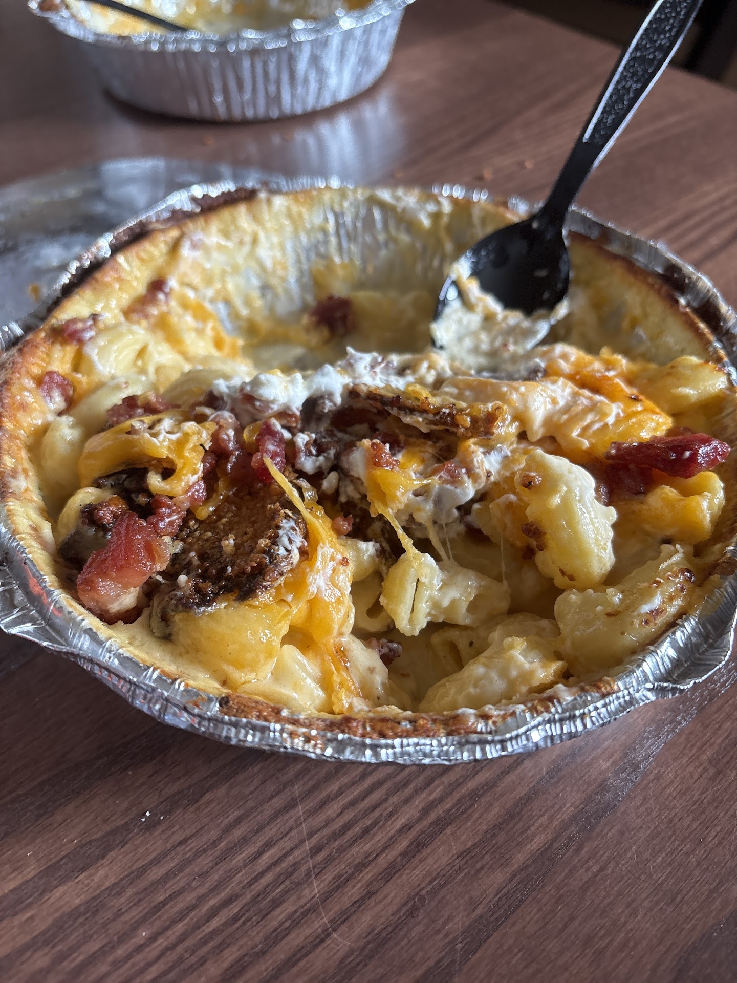 Got the Popeyes which has spinach, mushrooms and onions. It was so cheesy and creamy and the flavor is so vibrant and good. Nephews ordered the regular Mac and cheese and the baked potato Mac and cheese and they liked both of them as well. It’s about 12-13 dollars for the Mac and cheese which is reasonable.