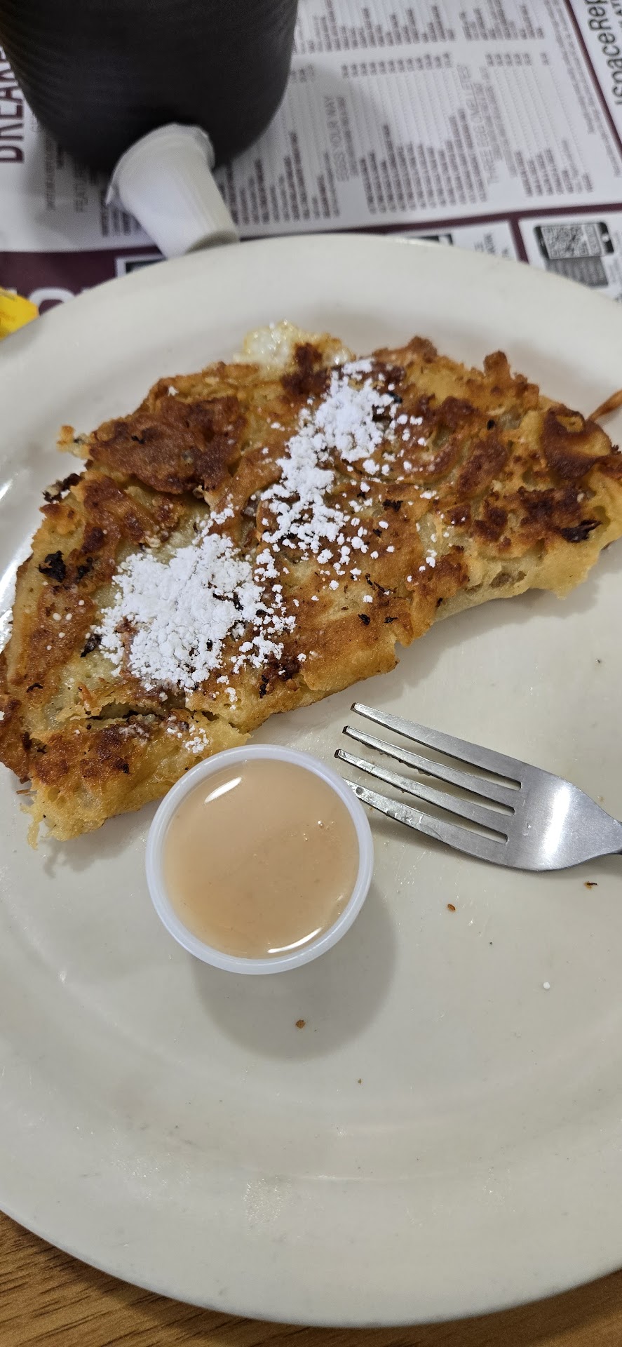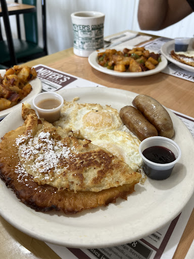 Read moreAfter driving a couple hours from New Jersey by 10am I was ready for a good breakfast. In the Mt Pocono area the choices are somewhat limited if you don't want fast food. A quick Google map search and Moyer's popped up and I am happy it did. It's a smallish cafe in a strip center and if crowds are an indicator this is it. One thing about being solo is while a party of 5 may have a short wait a single usually gets seated kind of quickly and I did. The menu has all the usual breakfast items like eggs, omelets, french toast etc. The one thing on the menu you would be hard pressed to find elsewhere is German style pancakes. I ordered an omelet with home fried potatoes. The server said that I should try the German pancakes so I did. The omelet and potatoes were cooked perfectly. The pancakes were a delight. The flavor is somewhat akin to a funnel cake. Kind of sweet with a fluffy texture. I ordered mine served with powdered sugar and were delicious like everything else I ordered. There are also various fruit toppings available. The service was super friendly and efficient. I never felt rushed or like I was waiting too long. The dollar value for my meal was exactly as I thought it should be. Not cheap but a good deal for high quality food. If you are in the area and hungry this is a great spot for meal. Check out the food picture and you'll get why I...