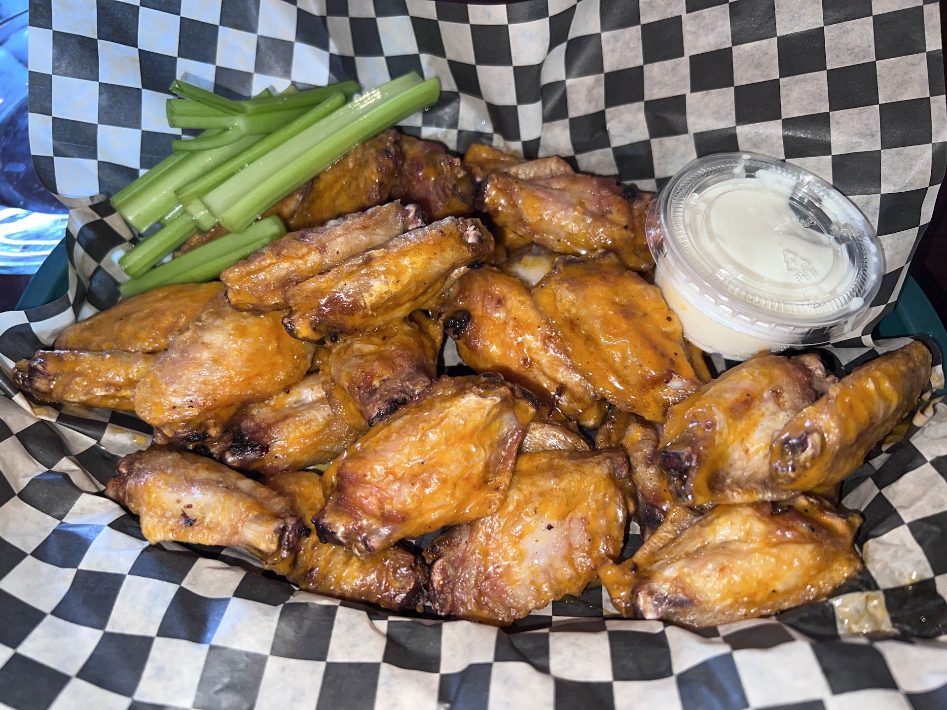 Food ordered Flat Basket wings - these are tiny but tender and delicious with really little fat. We found them better than regular bigger wings with much more fat. 12 Wings - regular buffalo wings. Tiny flats are better. Home Made Chili - excellent. Crock French Onion soup - I didn't expect much from a French Onion soup ordered in American grill restaurant. But this was surprisingly good! Key Largo Shrimp - good. Primavera flat bread - certainly pass on this one. The dough was pretty thick, far from "flat", and the toppings tasted like canned veggies.