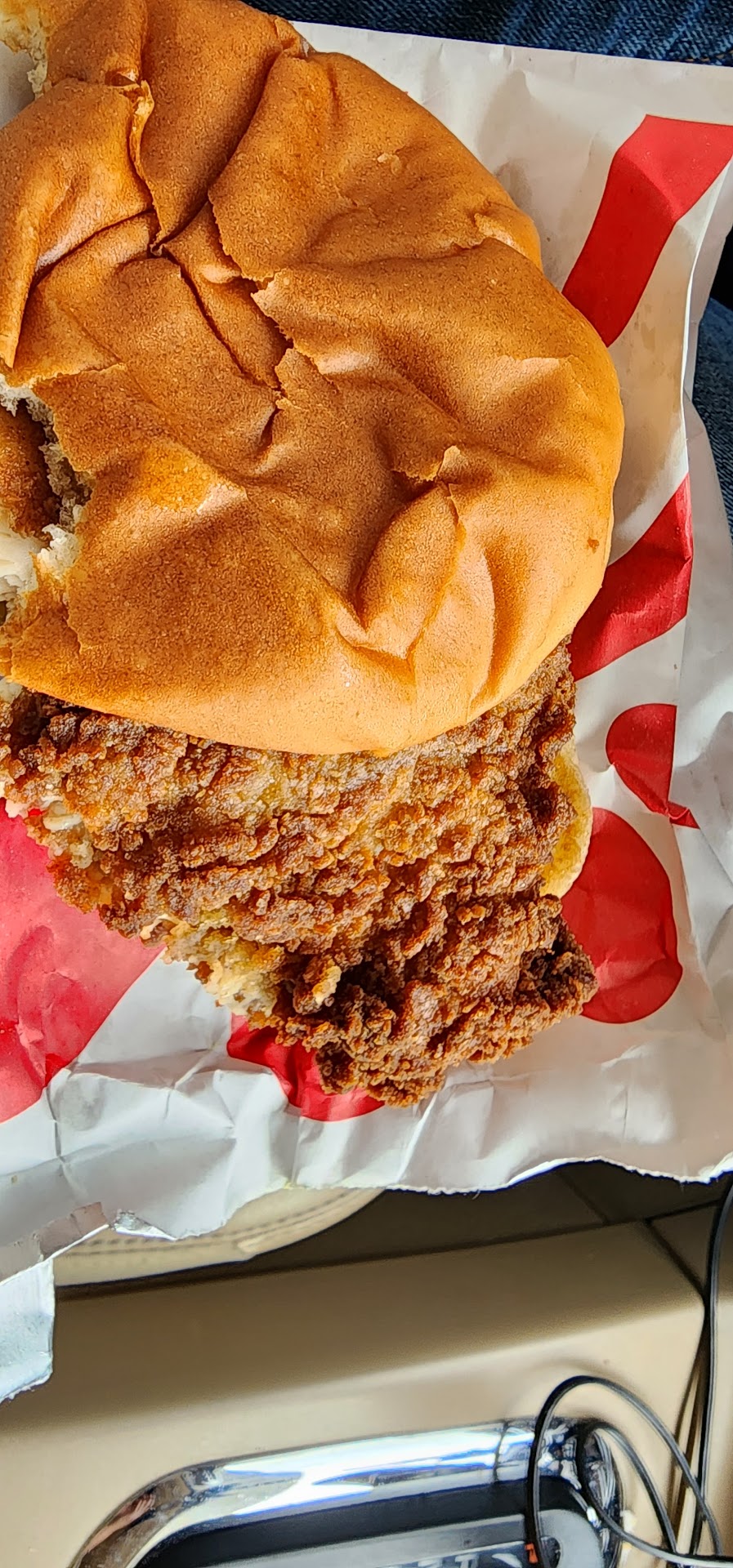 Burnt chicken filets! I have friends in the restaurant business, and I also have worked in the restaurant business, and these appear to be cooked ahead, dipped again in oil to warm up the already fried filets, and then serving them double fried in order to get food out quicker in a rush. Not happy. This is not the way Chick-fil-A runs their businesses and unfortunately, this Chick-fil-A will go out of business if corporate does not correct the behavior now. Other possibility is not changing the grease. In any event, the chicken filets are burnt crisp and overcooked. I stopped going. Just click on the picture to enlarge and take a look at the sandwich. The replacement was exactly the same, and she said they all were that way, which signifies cooked ahead and redipped in oil a second time. If you are in the restaurant business, then you know "exactly" what I am talking about. Please do not call me and CONFRONT me like your manager already did when I was sick as a dog. That behavior should never be accepted at a Christian-run business. The drive through is slow and I am guessing that is why they are precooking and redipping in oil to burn the filets. Has happened more than once and ONLY at the Toccoa Chick-fil-A. Waited forever, then waited in a parking spot, then asked for a refund because the replacement sandwich was exactly the same, if not worse. Mgr stated all the chicken was like that. (No other Chick-fil-A is overcooked like that.) No juicy. Hard as a rock. Appalled, alarmed,...