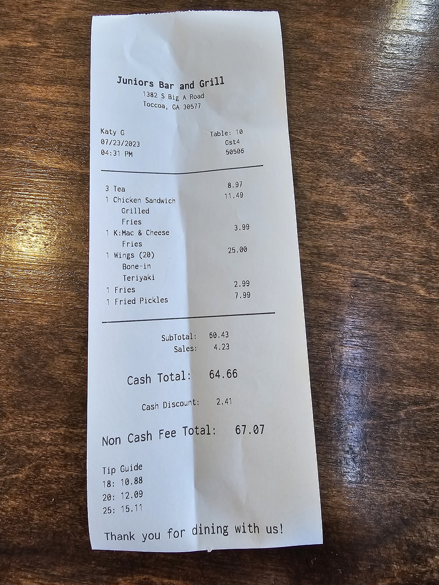 Read moreI've been 5 times exactly. Mainly because of the variety in your choices the town has to offer. Each time I'd been, they've only had the same cook on staff twice! I believe they main reason for the slower than molasses foods wait time is because it's the inexperience in that department.. is that's not the reason, then it's just quality of cook employees. We have had some absolutely ridiculous reasons for issues being had. One time we happened to be over of two tables occupied in the restaurant and ordered wings! We assumed the fryers were on and hot, it was about 3pm! It took them 38 minutes to get JUST MY WINGS to the table and my step father didn't get his because the cook accidentally tossed the wings in the wrong sauce! The cook came out and asked if my step father wanted him to wipe them off and re toss the wings, or to cook another order! He just declined to have any and then had to get them to remove them from the him because the waitress tried to charge us for them! It wasn't like she hadn't been involved in the entire dilemma! Yet for whatever reason she argued that my step father had been given his wings after the cook wiped them off and retossed them!! 😂😂 We laughed so hard and I asked her on the cold method for wiping the wrong sauce from these wings supposedly? Mainly because I was very curious as to how he planned to do it. I'm not lying she paused before answering and told us that he had wiped the sauce with paper towels!!! I said get the f@$#! Out of here!! You have been back to this table twice since the issue! Once to bring me a box, since I'm not going to eat while he sits there with nothing, and for whatever reason . The last time to bring the check because you didn't bring that when I'd asked for both a box and the check! Mind you the only other occupied table ended up soaking to us as we left and told us they were not surprised by how everything played out and that the days staff weren't exactly the restaurants A team!! I replied that those two couldn't make the squad anywhere else! We went back a few months later because my wings weren't bad! They just took way to long given there wasn't anyone eating. I just assumed they had to let the fryers heat back up because they turned them off after lunch?? Service had always been very slow and don't be in a hurry for your drink or any type of service but other than that, what other sports bar do you go...