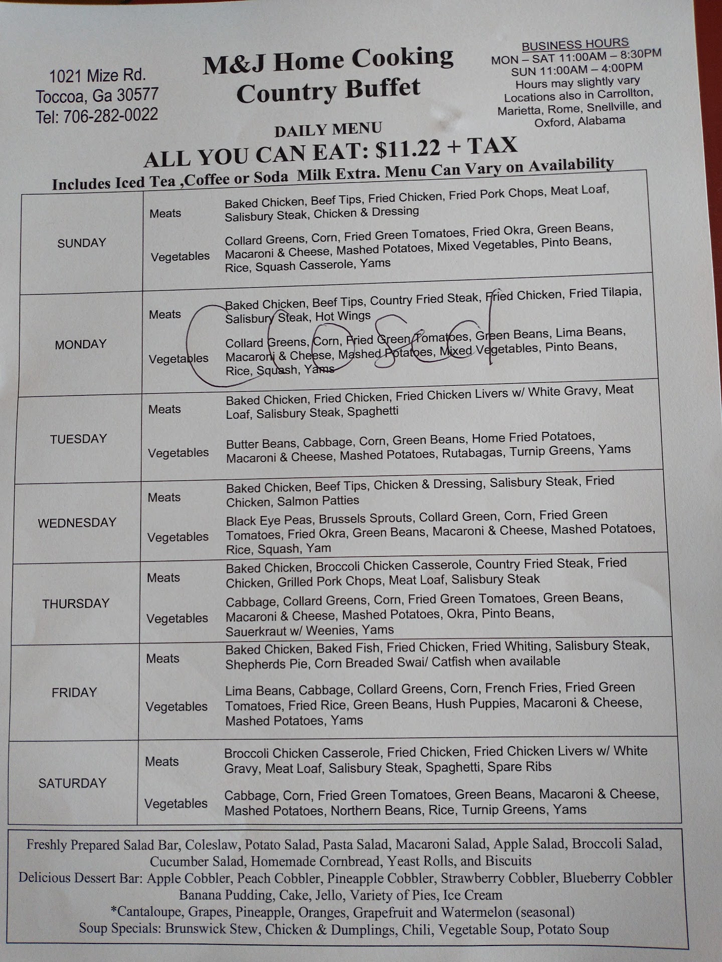 M & J Home Cooking Country Buffet — Restaurant in Toccoa