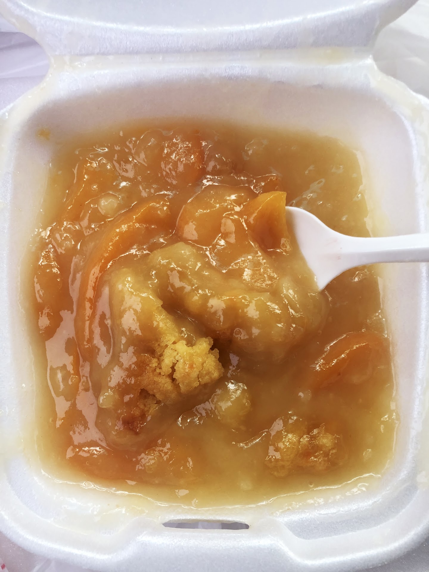 The portions were very conservative, with a small spatula. The cream corn, while good, consisted of only four bites using the plastic spoon/fork provided.