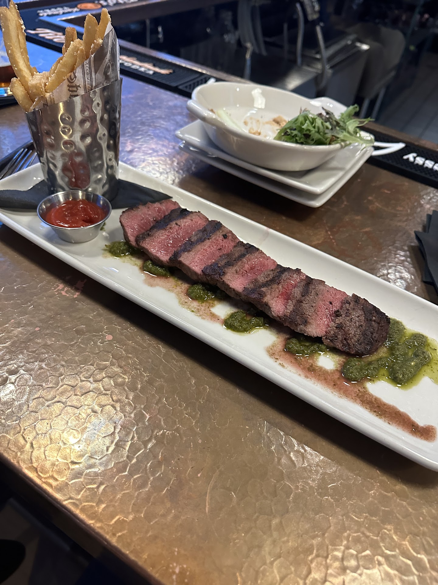 My fiancé and I thought, let’s try the new spot downtown. To which we made reservations as we expected there to be a long wait because of all the events happening downtown. We walk in roughly 5 minutes prior to our reservation, and it takes the host about 10 minutes to even come to the front desk to greet us. There were only about 2 tables seated and being served so we were confused as to why the wait was so long. Upon getting seated finally, our server gave us the run down on the drink menu. Unfortunately we didn’t get a chance to put in our appetizer and drink order right away because our server assumed that we needed more time which was no problem. The problem lies in the fact that our appetizer came out almost the same time as our dinner. The appetizer was basically a loaf of bread that was too hard to cut with our butter knives. Dinner however was not very good. She ordered the 12 hour brined chicken and I had the beef bourguignon. The chicken was beyond dry and was too tough to even cut with the sharper knife. The beef bourguignon was pretty decent and the major drawback was that the carrots were barely cooked and cold despite the steaming hot plate, which led me to believe it was microwaved. Also which I failed to mention took at least 30 mins to be brought to the table. In our opinion, it was way over priced for the lack of quality and the lack of attention we felt. We more than likely won’t be back and feel like we wasted a good date night on paying extra to be...