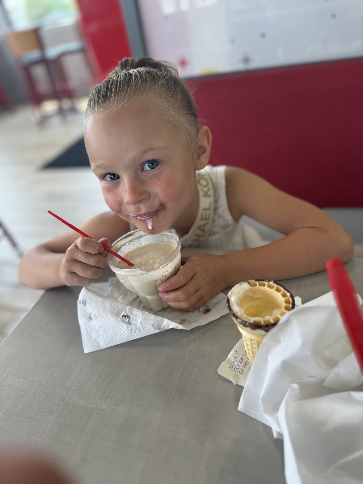 However, the second time we went and used our cone tokens, it was a worse experience. We ordered four chocolate and vanilla twists in a cup with a cone, since we went through the drive thru and were heading straight home. I don’t think they knew how to ring in the cone tokens but again, no issue since it was still a new establishment at this point. Then they made us pull forward and wait for what felt like forever… for four ice cream cones… after we had already waited at the window for about 10 minutes. Very frustrating but we were still trying to be understanding.