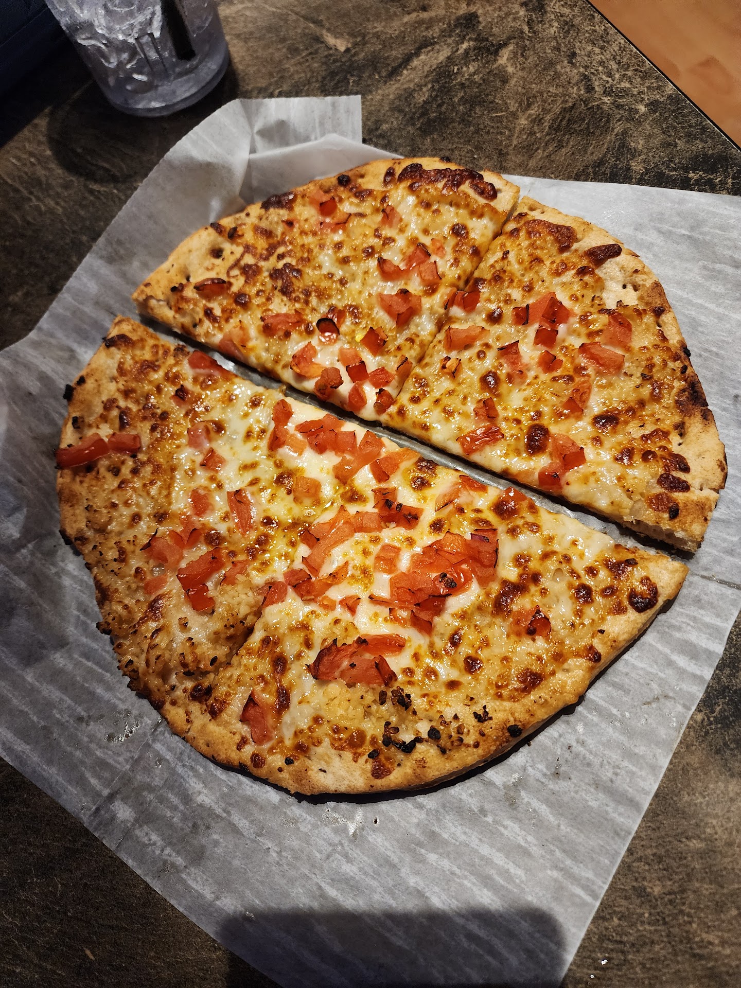 We ordered a personal Margherita pizza pretty much just to try it. The pizza has olive oil, garlic, mozzarella, tomato, and basil. This is one that we won't be trying again. There were too many diced tomatoes on it, and it overpowered the rest of the pizza. That is until the after taste kicks in. Then it was straight garlic for at least an hour after we left. While some may like it, it just wasn't for us.