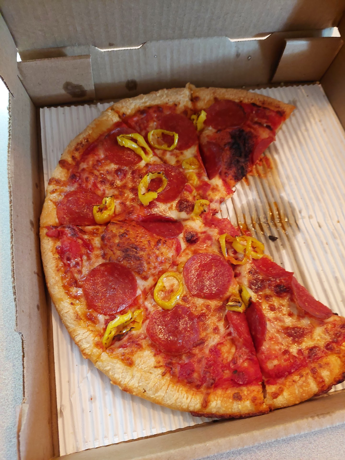 And? The pizza is absolutely horrible. Dry and burnt. Whatever. At this point I donāt care. We eat it because weāre hungry.