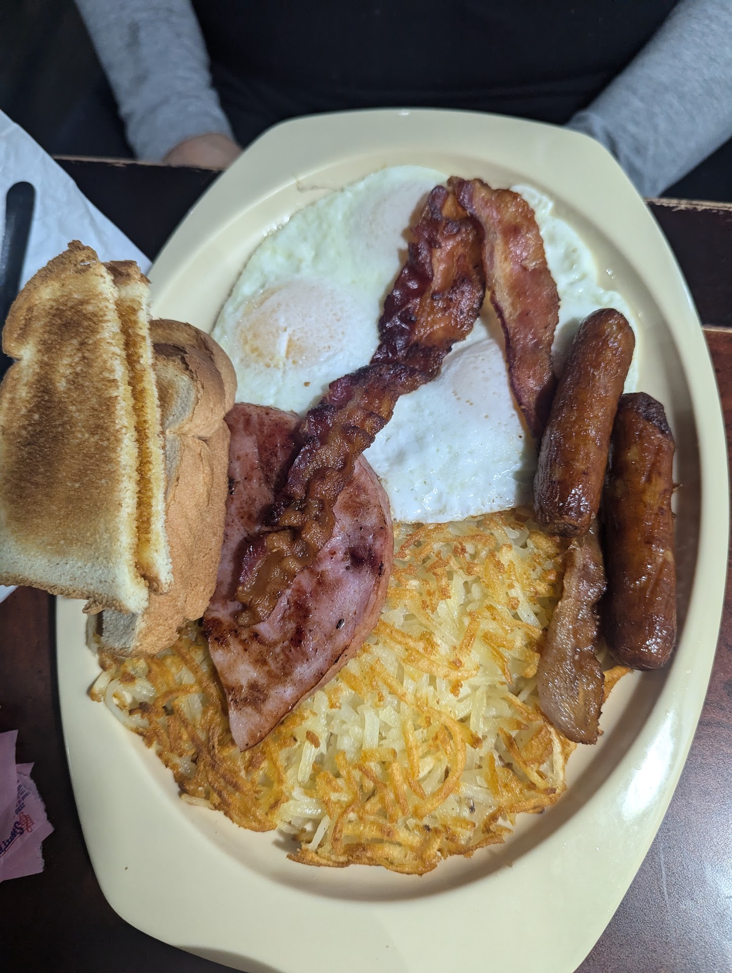 Read moreI used to frequent this place a few times a week for almost a year before they changed locations. I've only been to the new location a few times since but haven't been in quite a while. A buddy and I decided to stop in before work this morning, we were in a bit of a rush and I let our server know that. She must of relayed that message because our order came out very quickly! I ordered over medium eggs, extra crispy hashbrowns, toast and a coffee. I received scrambled eggs, toast, and not crispy hashbrowns. I did not eat a single bite of my food and had my server take it back, unfortunately I did not have time for them to remake my order. I still had to pay for my coffee which I was a bit disappointed in as I had to sit while my buddy ate his breakfast and I did not eat anything. Our server was absolutely excellent. I don't want this review to be a reflection of her performance, I think it was just a mishap in the kitchen as I've never had an order messed up previously. All in all I guess I'm disappointed in the customer service, after having an order messed up and not having enough time to have it remade I think the least they could have done is give me the 1.50 coffee on the house. None the less I still tipped...