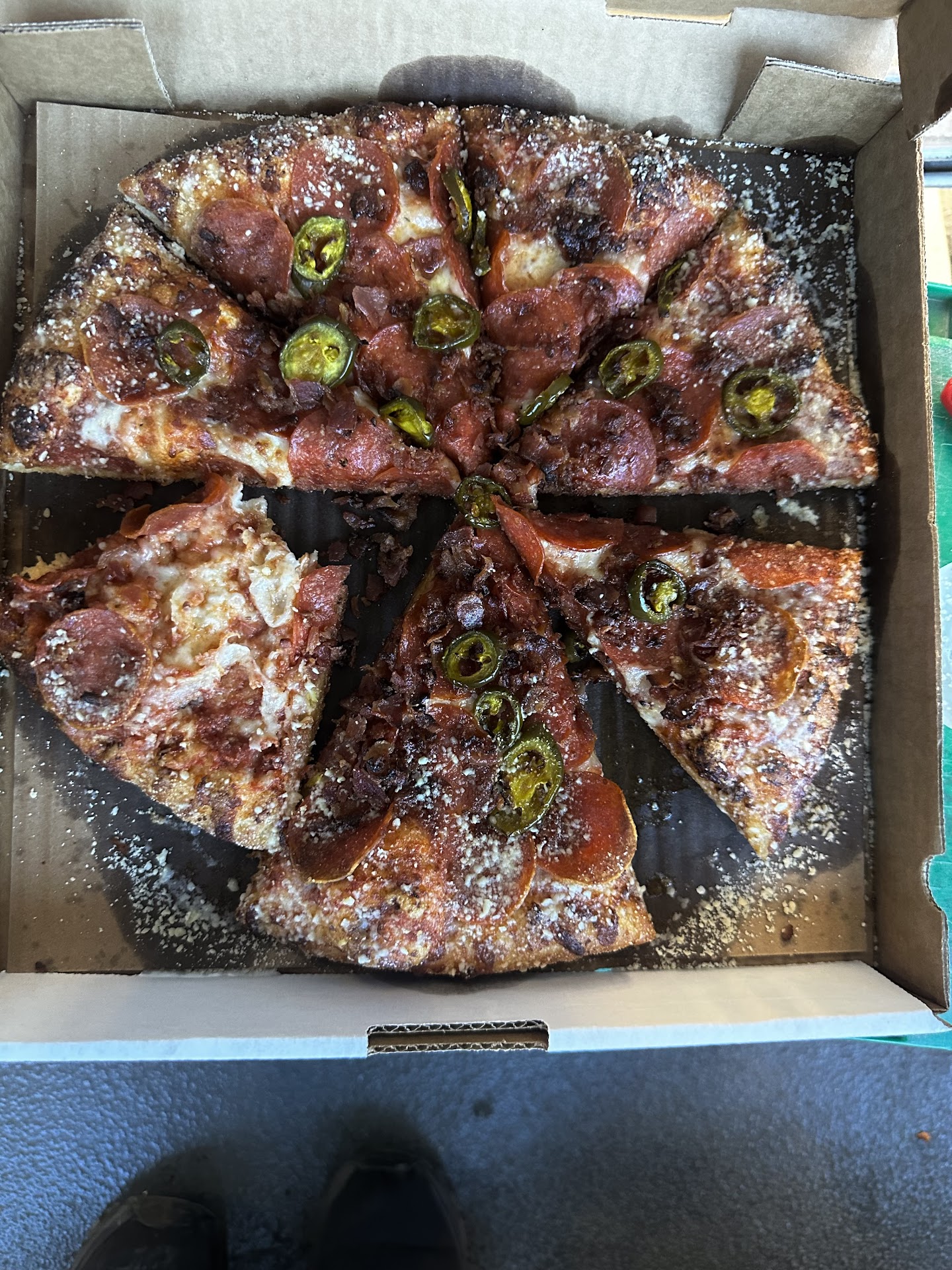 Now on to the pizza, Crust is good, toppings are good however they are incapable of making a pizza with more then 2 topping on it without giving you a doughy soggy crust. For some reason they think the time it takes to make a one topping pizza applies to a three topping as well.