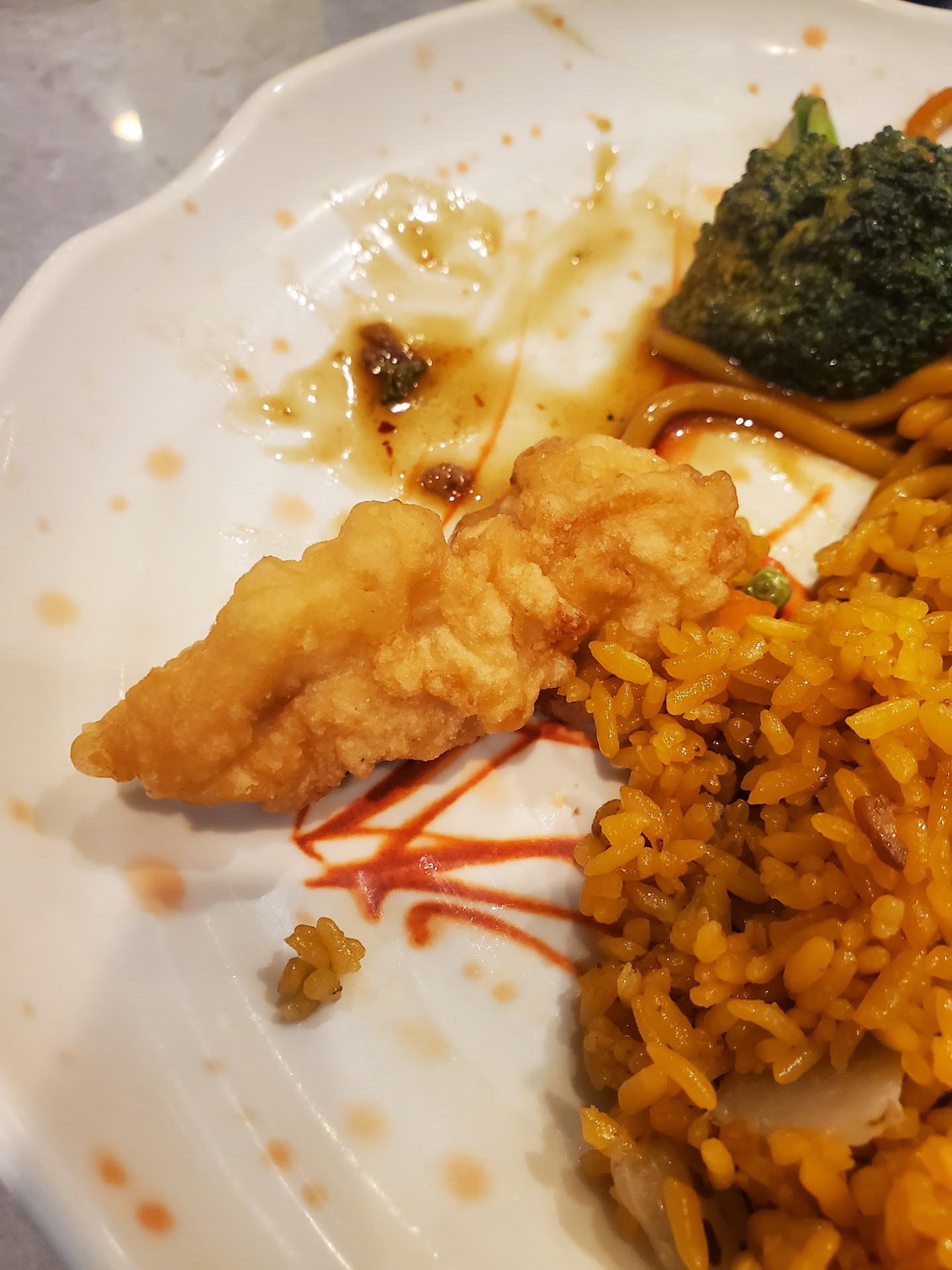 Read moreI don’t know why anyone would rate this place even decently. Everything is so disgusting. The shrimp is served with the shell on, even the deep fried shrimp still had a shell on it and not just a little bit, the entire shell, so you had to peel all of the deep fried breading off. The bathrooms are disgusting the fit and finish of the entire restaurant is extremely amateur. They use contact paper on their windows to cover them up and stick on rock texture above the overhead vents. The attendants don’t clean up the tables very frequently. everything is either bland or old, the sweet-and-sour sauce is watered down. The ice cream is watered down. Everything is just horrible. The only thing worth any redeeming quality and probably and the best value is the hibachi grill, which is pretty incredible for under $20. However, there’s not very many choices and they keep raw meat next to raw vegetables with tongs, touching and stuff. I don’t think it’s very good hygiene. Overall, the selection of food isn’t that varied much of it is completely flavorless, soggy, watered down, stale or overcooked. Personally, I think they charged far too little. I think if they charged more, they could afford better quality ingredients and fresher, food and better tasting food. I would happily pay $25 a plate if they used better quality ingredients, instead of $15 a plate for disgusting and inedible food. Hard pass...