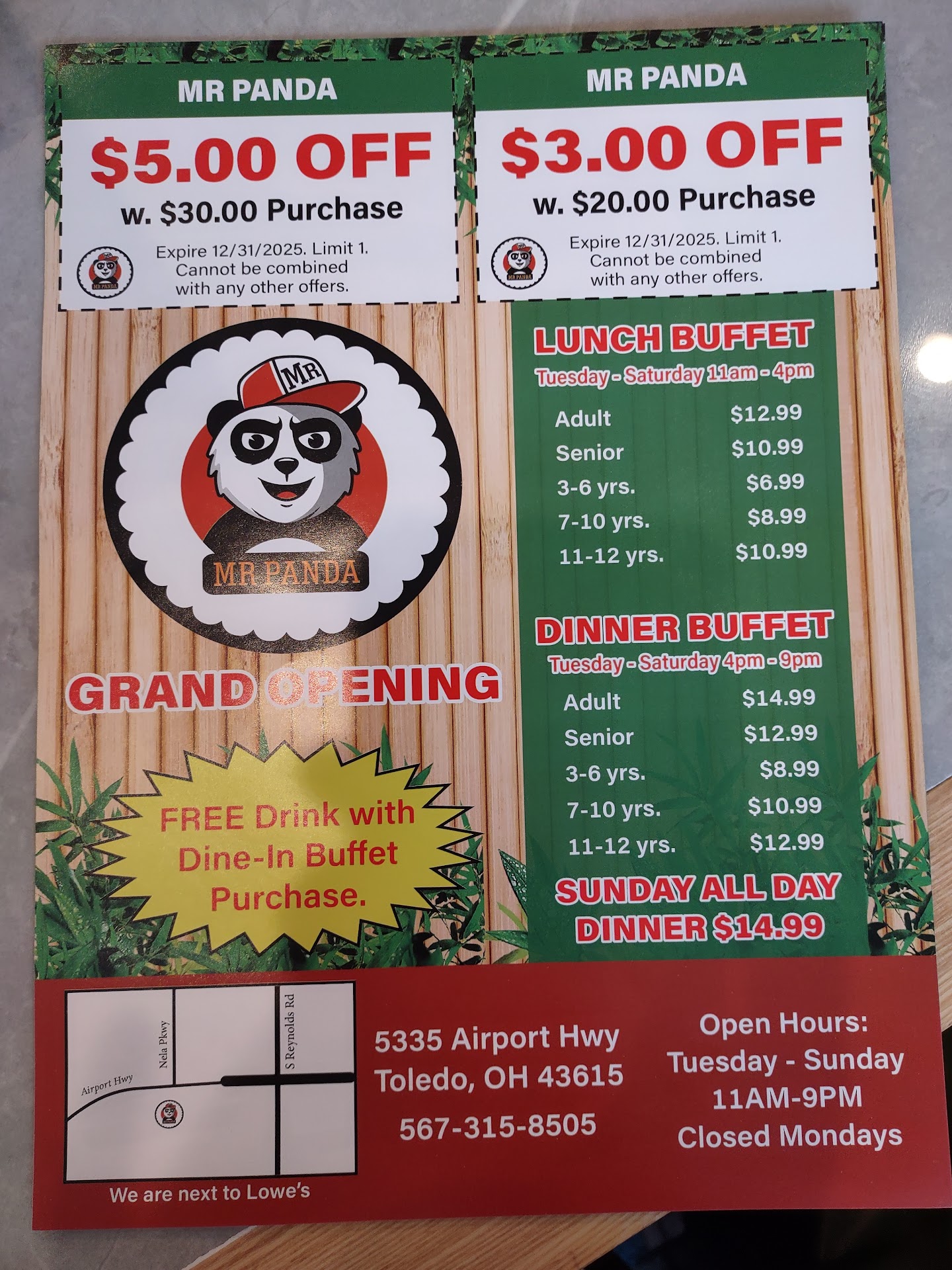 Was really impressed with the selection, and thought the price point, especially considering the included beverage was reasonable. Rather large hibachi section, although I didn't try it this time since it was so busy with the grand opening this weekend, but looking forward to trying it next time. Favorite dish I tried this time was the lo mein, which was super good, usually do no like lo mein at buffets, but it was top tier. Also really liked the coconut chicken and general tsos. My boyfriend also really enjoyed the fish/seafood options, but I won't delve into that since I don't eat seafood. Really cool that you just pay at the door, and can get your own drinks. They were very busy (lined up out the door) but were trying their best to accommodate guests as quickly as possible. Really hope the standards of food/service continue because this will be a regular spot for us. All staff were friendly, and it is a very welcoming environment. Cannot think of a single negative thing to...