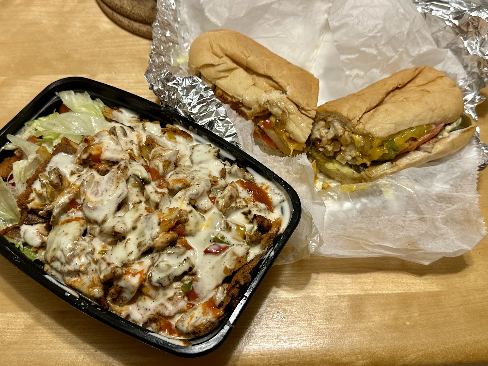 My son heard this place had really great reviews and wanted to try it. I said we'll buy if you fly and tried to order online. You can't order through the restaurant website only a 3rd party delivery service eg. Doordash which always jacks the prices up to something ridiculous 😤. Tried to call and order pick up. The phone number is no longer in service 🤦♀️ My son still really wants to try them so hubs and I text him our order by the number on the menu photo and he drives off. As soon as he gets there he notices the numbers on the wall menu do not correspond to the numbers on the menu photo online. We text him our full order me: Philly Cheesesteak, fries, berry beets smoothie, hubs: Five Burroughs and healthy berry smoothie (I think), son: Brooklyn Bridge and mango smoothie. There was nowhere for him to sit and wait while the order was prepared sonhe just stood around and when he got home with the food each one of us had a mistake with our order. Both my son's and my subs had no onions or peppers (how do you make a Philly Cheesesteak without onions and peppers 🤷♀️?), they forgot my fries, and hub's and my smoothies were the wrong ones, but son forgot about the menu numbers not corresponding, so I'll split the difference in fault. But hub's was very different as it had banana and peanut butter (which he would never order, but also had he been allergic to peanuts...😬). ThisbisbwhybI gave service 3-stars. I gave the place a four star overall, because even though my son's and my order didn't have the peppers or onions the food itself was a 5-star, super delicious. Like REALLY good 🤤. Hubs also said his sandwhich was REALLY good. If these guys get their poop in a group this place would be 🔥. I would give them...