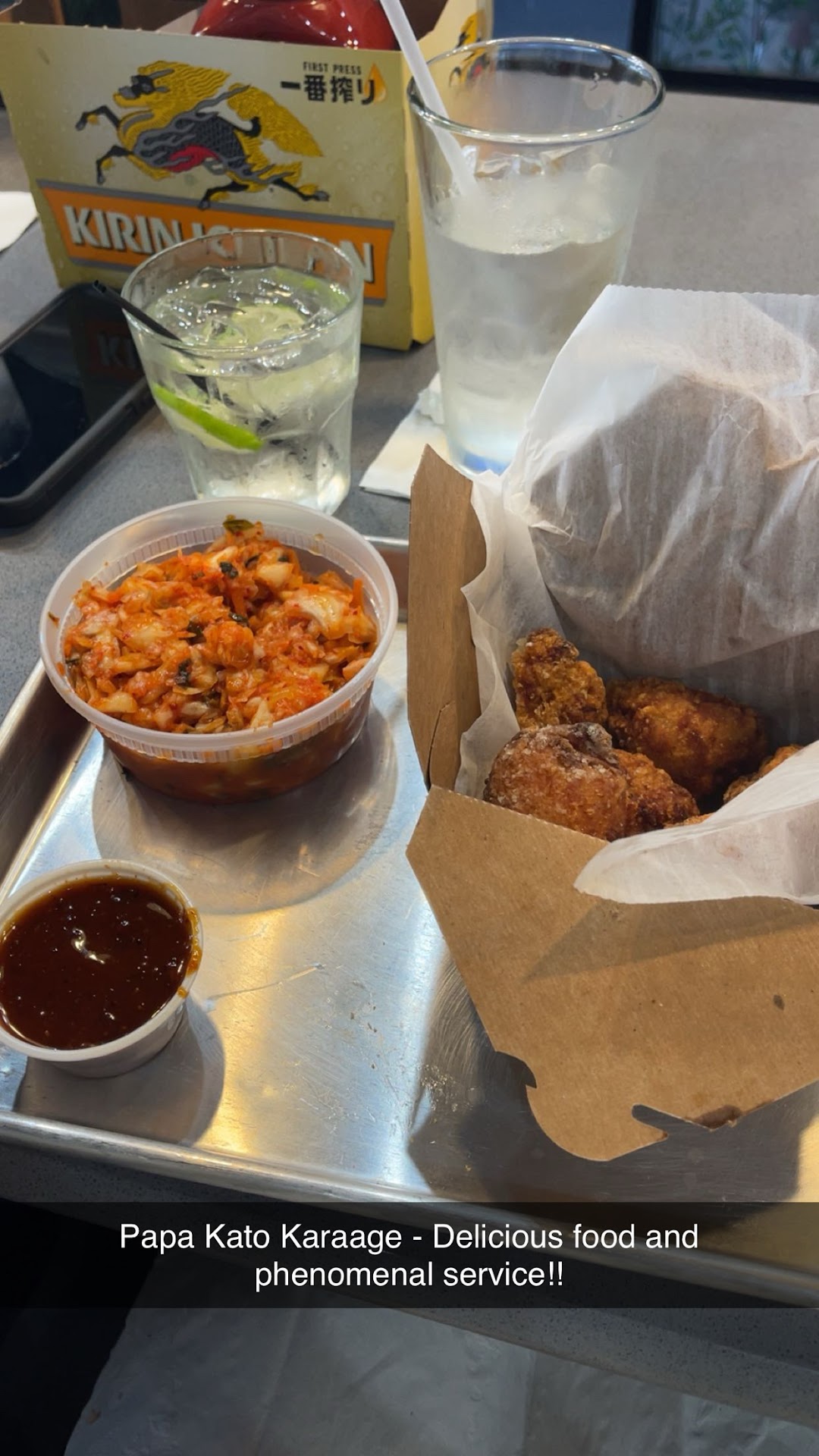 Read moreJuiciest fried chicken I've had! And the breading isn't that heavy stuff you get from other places.. Karaage is fried twice, once to cook, twice to crisp. So it does take some time and care for the wonderful staff to cook up, but it is worth every minute. Speaking of the staff, everyone was a joy and made the visit amazing! Thank you all for making fried chicken lovers dreams come true 🫡🤭 Got the ponzu and sambal as sauces, both were amazing. Ponzu if you want a mild vinegary taste with a citrus note to it. Sambal a tomato base with a hint of spice to it. The Japanese style potato salad is always a good go to side. Tried out the Ichiban beer, not a big beer drinker, but it went very well with the chicken, nice and light.