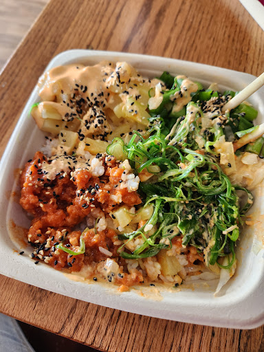 Read moreThis is my second time having poke so I didnt know what to expect, but ordering at the kiosk they had was kind of confusing, just the layout of the menu. I came in with my brother we ordered similar items, after we ordered we waited about 15 minutes. he got his drink first, we waited another 30 minutes, he got his food. 10 minutes later they called out my order but not my milk tea, it had been forgotten. There were also no forks when I got my food (but i was helped by someone frantically trying to find me a fork.) But they made it immediately for me as soon as I brought it up so I'm not upset. The food itself was very good! In fact it makes up for almost waiting an hour for food. I will be back I will just be ordering ahead. The poke bowl of course is amazing but so was the sushi burrito. The staff are friendly, the food is great but the wait is just so long. Kind of a bummer. Now I dont want to be unfair, they did have several door dash orders and one was very large (15 food items and 16 drinks) But still I'm glad i had the day off and was not trying to come here on my lunch break. Will be back again...