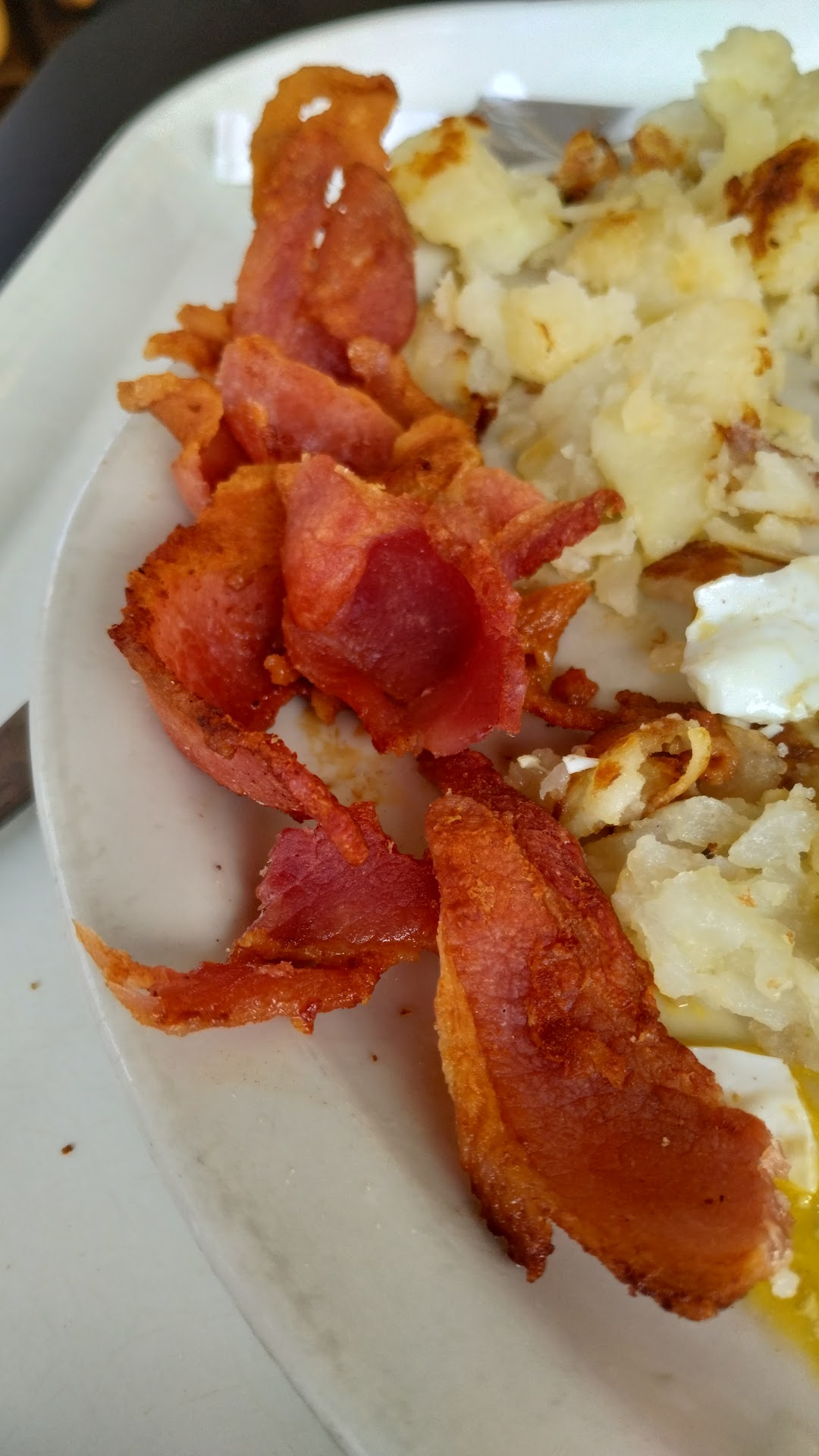 Read moreI am giving this review the three Stars based on a collective of experiences whereas today's experience would definitely be known worthy of a one star. I firmly believe that the staff tries and tries hard. And in my estimation they often succeed. The gentle manager Justin is most hospitable and personable. There is a staff member of their name Christopher who is exceptional in customer service. There are other staff members that are delightful but I do not know their names. I first begin patronizing this establishment when I moved here a year ago. I had a couple of bad experiences especially with regards to very rude service by two staff members. Believe me we butted heads. I stayed away for about 6 months but then I begin coming back because I remember the food for the most part being pretty good and it is very economical and it is right in my neighborhood. I can a test to a lot of improvements. One of those rude staff members is still here and I would take personal delight if he would exit the orbit. Lol. I placed my breakfast order today and after 25 minutes at Verma self wondering what was taking so long because the place only had about nine customers. Suddenly a man in the dining room hollered from his table that he was given the wrong breakfast and he thinks it was for the guy that was in front of him in line. That would be me. They apologize to him and brought him a new breakfast and I still had to wait. Finally I got up and went to the guy at the register explaining that not only did that guy get the wrong breakfast but I have received nothing. That was informed they would begin prepare my breakfast at this moment. it was brought to the table with no apology or acknowledgment of what had happened. This bacon was so hard it was like I put a rock in my mouth. It was completely unable. The hash browns were very good and they consistently prepare very good eggs perfectly done. I hope someday to offer a five-star review that it's little things that make a big difference. I understand mistakes happen and they may forget my breakfast or give it to somebody else but just simply acknowledge it. I own up to the front that I chose not to say something while I was there and I could have but I have been foreseen as a problem before and I just don't want to welcome that tension back...