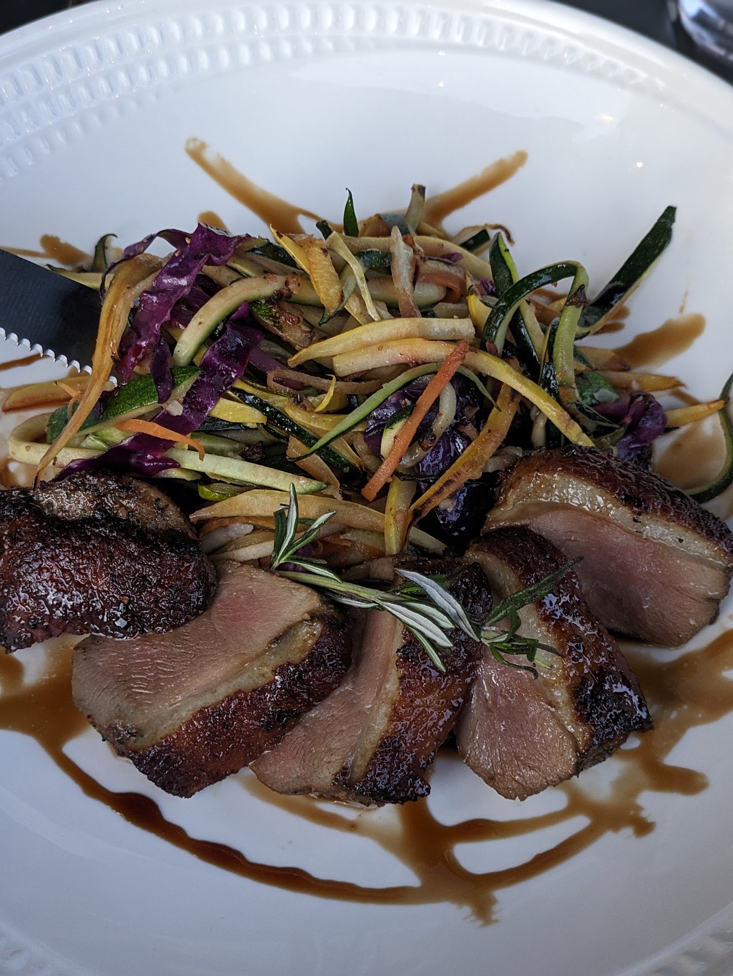 Read moreSouk Mediterranean Kitchen & Bar: A Culinary Journey to the Mediterranean in Toledo Stepping into Souk Mediterranean Kitchen & Bar, I was immediately enveloped in a warm and inviting atmosphere. The rich interior decor and cozy ambiance set the stage for a delightful dining experience. We opted for the lovely patio, which offered a charming view of the farmers market and a colorful mural. The patio was adorned with umbrellas, providing a welcome shade on a sunny afternoon. Our culinary journey began with cocktails. I chose the "Pedro Piper (Picked a Peck of Pickled Peppers)," while my partner opted for the "Fuzzy Wuzzy Buzzy." Both drinks were expertly crafted, bursting with vibrant flavors and presented with artistic flair. However, I was slightly disappointed to find that only tap water was offered, especially considering the upscale nature of the restaurant. Bottled water or a choice between still and sparkling would have been a more fitting accompaniment to the meal. For appetizers, we indulged in "Auntie Camille's Grape Leaves" and the "Crispy Short Rib Hummus." Both dishes were exceptional, showcasing the rich flavors and textures of Mediterranean cuisine. The grape leaves were tender and flavorful, while the hummus, topped with crispy short rib, was a delightful combination of savory and creamy. Moving on to the main course, I opted for the Scallops, while my partner chose the Garlic Roasted Duck Breast. The duck, in particular, was a standout dish. It was cooked to perfection, boasting a succulent tenderness and a robust, rich flavor. The accompanying slaw complemented the duck beautifully, creating a harmonious blend of flavors and textures. I wholeheartedly agree with the sentiment that Souk offers the best duck in town! As a side dish, we shared the Roasted Fingerling Potatoes. While they were tender and cooked well, the flavor profile was a bit underwhelming. A touch of garlic or butter would have elevated the dish and added another layer of complexity. Throughout our meal, our server was attentive and accommodating, ensuring that we had everything we needed. The service was prompt, and the kitchen staff deserves a special mention for their culinary expertise. Overall, our dining experience at Souk Mediterranean Kitchen & Bar was delightful. The warm ambiance, expertly crafted cocktails, and delicious appetizers set the stage for a memorable meal. The standout dish was undoubtedly the Garlic Roasted Duck Breast, which truly lived up to its reputation as the best in town. While the tap water and under-seasoned potatoes were minor disappointments, they did not detract from the overall positive experience. Souk is a culinary gem in Toledo, and I eagerly anticipate my next visit to explore more of their tantalizing...