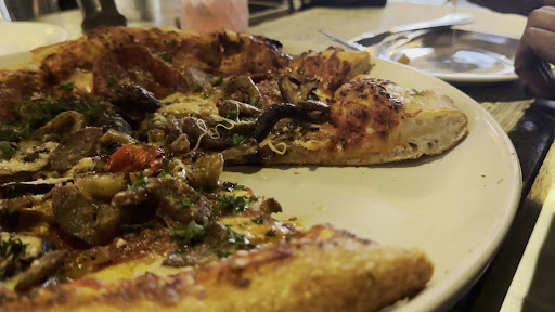🧅 Food Ordered: • French Onion Soup — Deep, rich flavor. Not the “cheese lid” style but still excellent. Even the bar guests next to me ordered it after watching my reaction. • Short Rib Hummus Bowl w/ Veggies — Looked incredible. Fresh produce was top-tier. The meat needed more salt or finishing oil, and the hummus leaned tahini-heavy without much zing. • Spicy Italian Pizza — Amazing crust. Sausage: flavorful. But toppings felt mismatched overall. Mushrooms were a bold move. I’d try another pie next time. • Tomato Soup (observed) — Our neighbor at the bar ordered two bowls. Looked hearty, thick, and clearly someone’s comfort go-to.