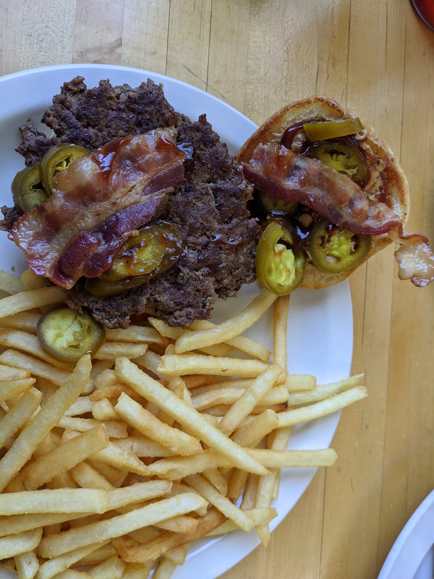 Read moreQuaint little place by the courthouse. I had heard legends of the Firey Peanut Butter Burger. It lived up to the hype. Patty tastes hand-made and is well seasoned. The combination of bacon, BBQ sauce, jalapenos and peanut butter is inspired. At just under $6 it is also a good value for the money. Might be even better with a slice of pepper jack cheese. I will do that next time.