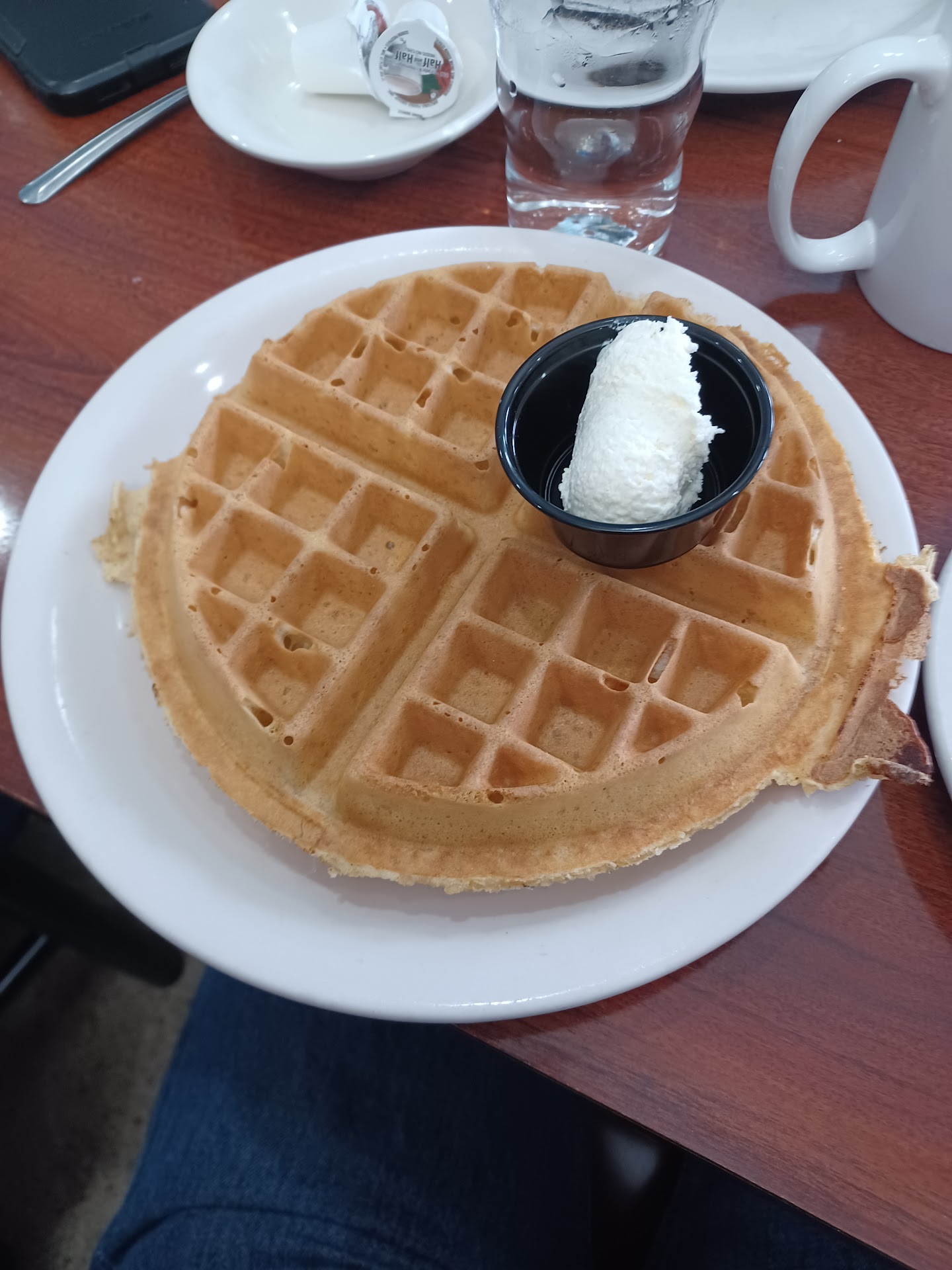 As I was finishing my omelet, I realized that I had forgotten to get the one thing that I was told that I HAD to try, the Dutch Pancake! I ordered the Baby Dutch, and our EXCELLENT waitress, Missy, did let me know that as they are only made when ordered it would be about a 25-minute wait. No problem! (One reviewer commented on the wait time for this signature item and downgraded the ranking, perhaps they didn't understand that they are only made to order, and not an attempt to speed the service (as they assumed) to clear the table!🙄🤦♂️). There is some assembly required. The traditional accompaniment is a lemon flavored glaze, so the components, whipped butter, powdered sugar, and fresh lemon wedges are brought to the table for you to mix together to suit your tastes. The Baby Dutch was brought out when reading, fresh and piping hot! SOOOOOO glad I didn't miss the chance to experience it!