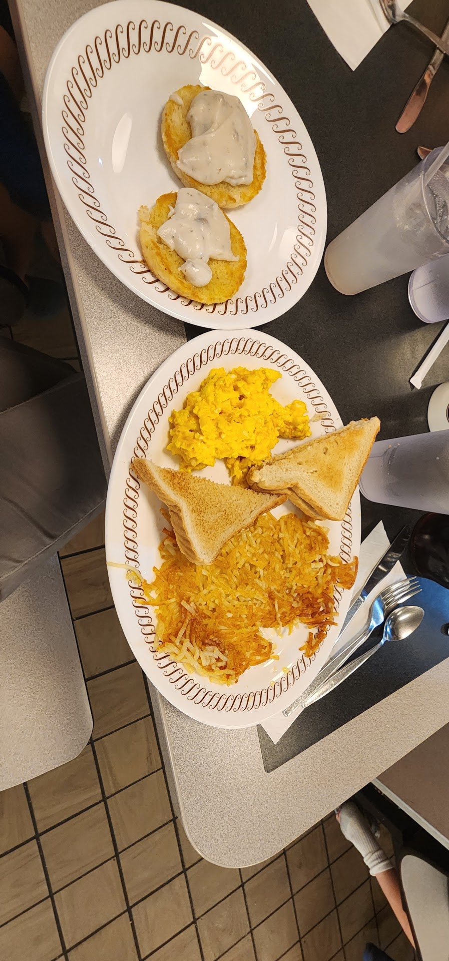 Read moreCame in today (04/08/2024, day of eclipse) around 5pm with a friend and our 5 children. There were 3 staff members working. There were 5 empty tables that still neeeded to be cleaned and no sense of urgency from staff to clean tables. We stood in the waiting area for about 20 minutes until I finally decided to take matters into my own hands and clean a table for our children that were growing restless. Our waitress, Angel, came over and said to us “are you trying to sit here”, I said yes and she responded with “you’ll have to give me a minute, I’m busy”. We waited about 10 minutes for her to come back. When she did, she told my 3 year old to “sit down” and took our order. Every time I tried to speak, she said “anything else??”. Half of the order came out, 3 waffles, which she slammed on the table, one plate almost hitting my 1 year old in the face. She quickly and flatly said “I’m sorry”. Another 10 minutes goes by and she brings two cups to the table, I’m assuming water. Then sternly told my friends 2 year old “DO NOT SPILL THAT”. My part of the meal comes out about 5 minutes later, incorrect. When I corrected her, she checked her notepad and took it back. She then brought it back out incorrectly again… after all of our food was served, we had to ask the cook, Joseph, for the 2 drinks we were missing, he was very polite, grabbed the drinks immediately and apologized for everything. I will admit that I do already have low expectations for Waffle House, but Angel was extremely rude and unprofessional. Shoutout to Joseph for being apologetic and our food...