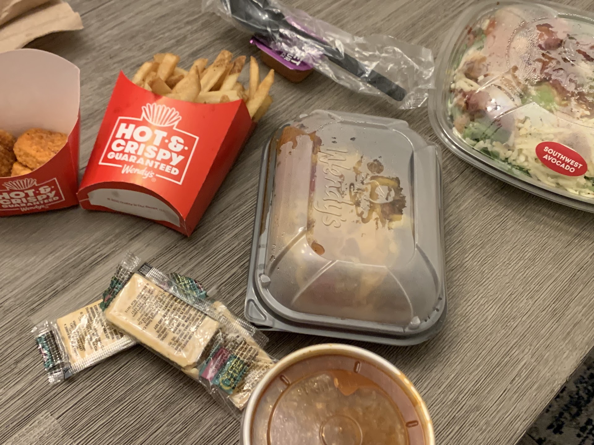 Read moreThis isn't my usual Wendy's location but it was on my way home so I decided to stop. I ordered through the app which means I'd already paid. I'd forgotten how slow their drive-thru is. They move at a snail's pace. Just to get two items I pre-ordered and paid for on their app I sat in that drive-thru for 15 minutes. This has been my experience with their drove through whenever they have more than 2 or 3 cars in line. With other apps I can change my method of pickup once I get there but there's no option for that in their app. Never use their drive-thru unless you're ready to sit and wait a long time. An edit to my original post. I ended up sitting in line for about 20 minutes before I made it to the speaker. I told him I had a mobile order and he said to pull up. He didn't say anything at the speaker about them being out of baked potatoes. He waited until I got to the window to tell me that. I hate their fries. I had no intention of getting those. So I just asked for the nuggets that were part of the order and figured I'd get stuck eating the cost. They only had spicy nuggets. They didn't have any regular nuggets prepared. I had to pull up and wait another 5 minutes for them to cook more nuggets. Even though I don't stop here often, this is not the first time I've had problems like this at this location. I will never use this Wendy's...