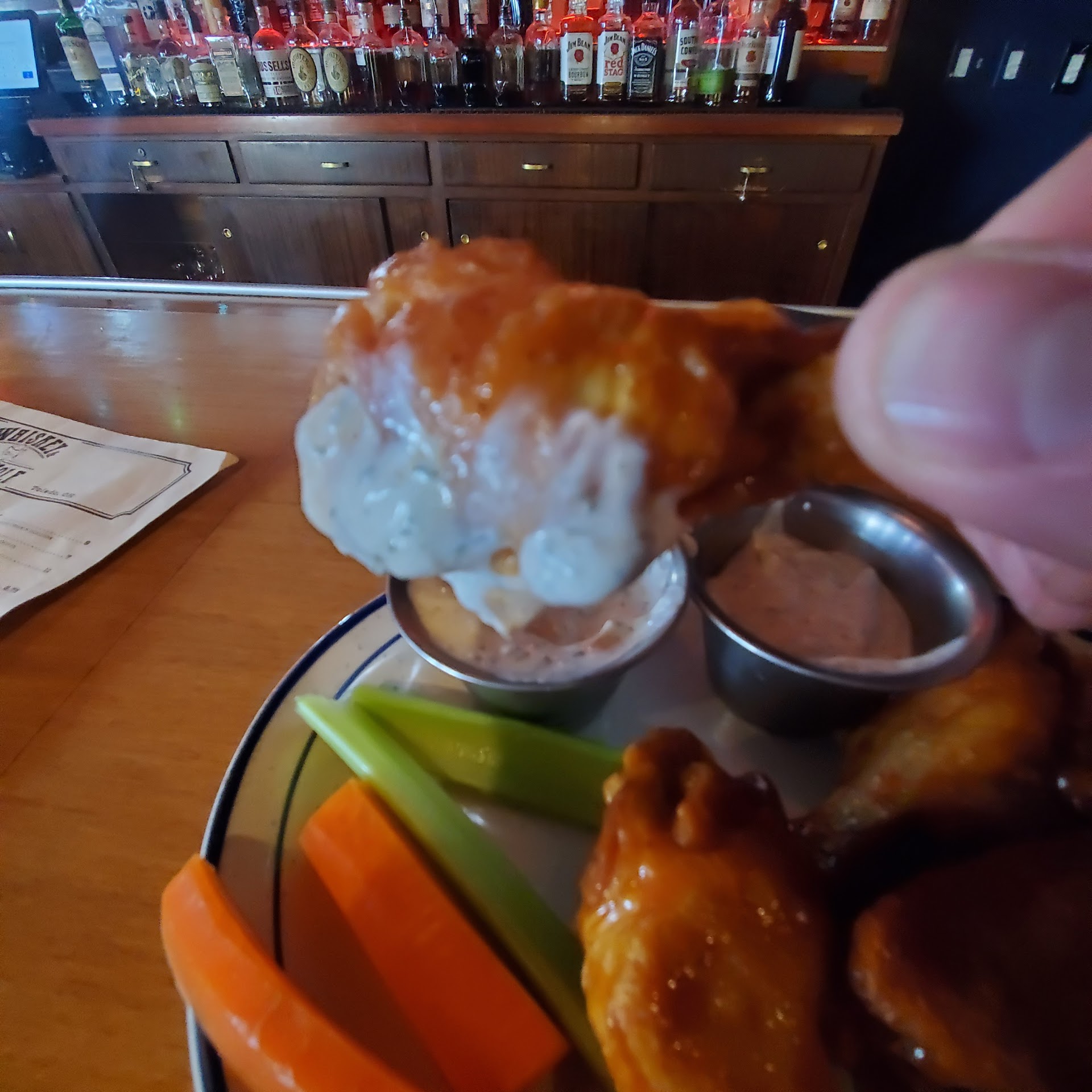 Food Quality: Short answer --so good. Like really good. We started with the whisky BBQ wings. Naked wings cooked to perfection with homemade BBQ sauce. You may also choose the buffalo sauce which is also made in house. The ranch for dipping was also homemade. Plenty of meat on the bone and so tasty. The nachos also seemed like a good choice, but we’ll save that for next time.