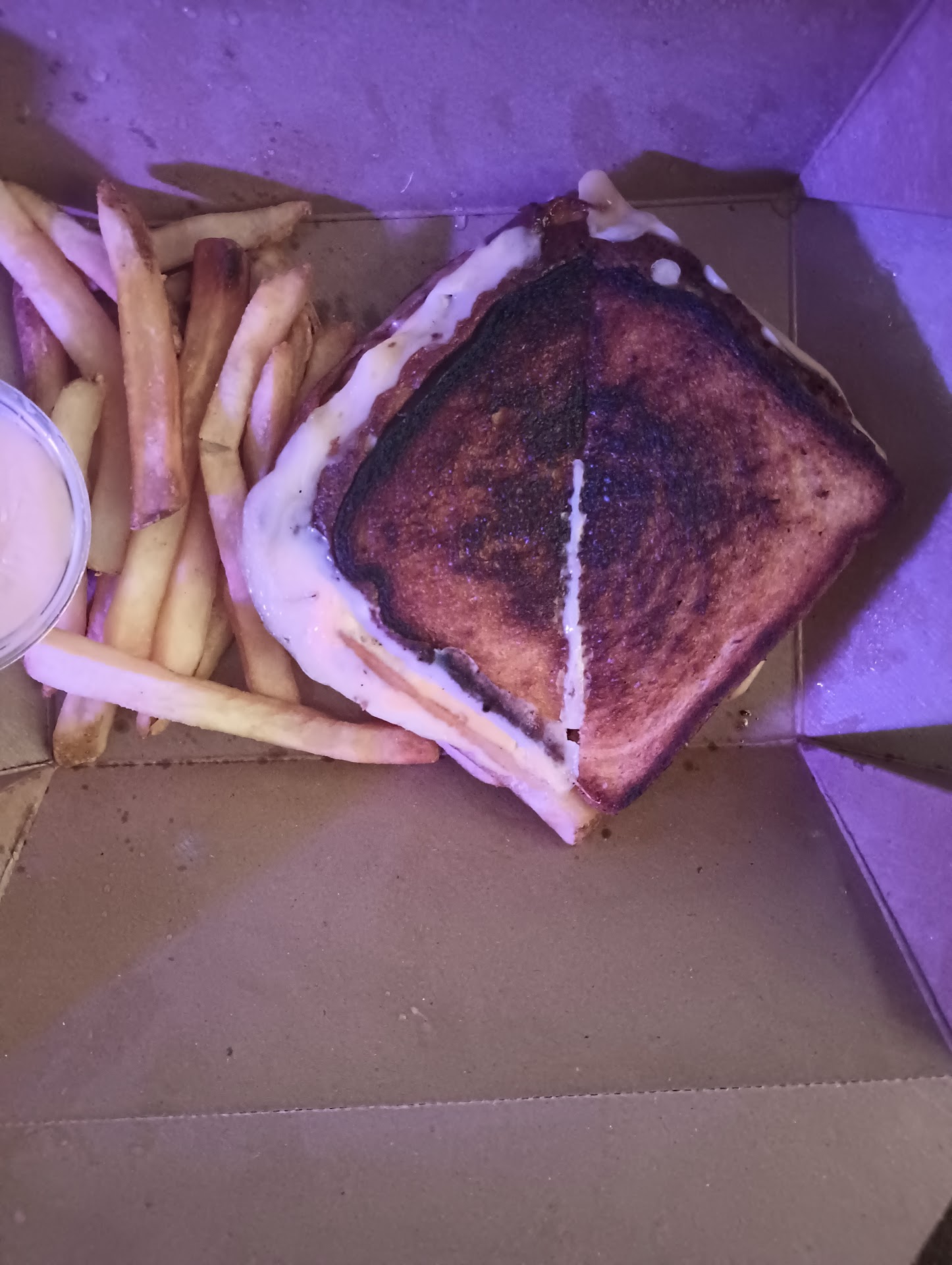 We got one of the prime rib sandwiches and the fried chicken thigh sandwich. The prime rib was fine, nothing special. The chicken thigh sandwich was really pretty good. Would definitely order that again. Both came out with cold/slightly warm fries. Normally I’d just accept it but after the frustration over the cocktail and the poor service I sent the fries back. The manager or maybe owner brought our hot fries and they were great.
