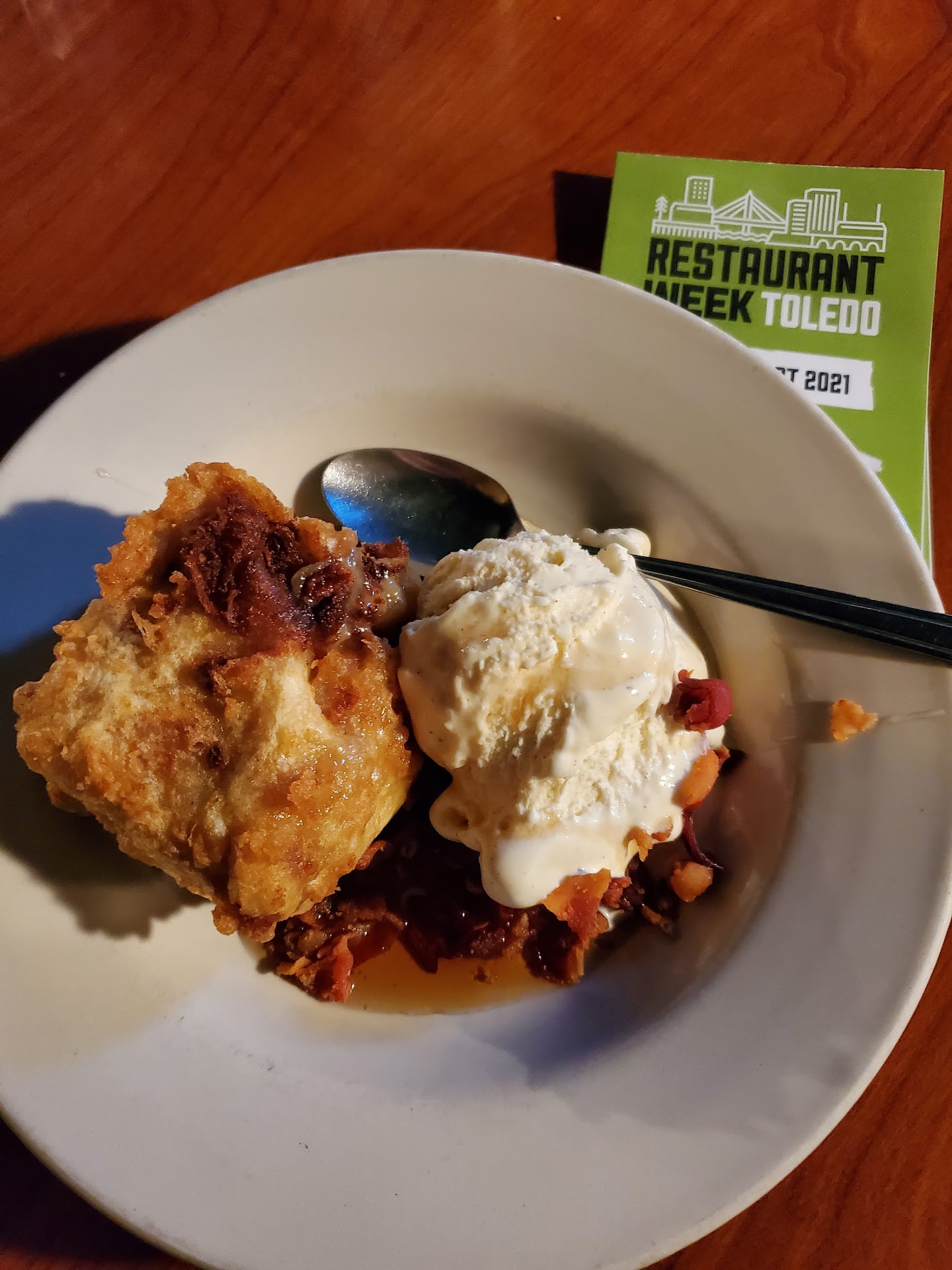Read moreWe stopped in a Ye Olde Durty Bird for the first time to try their Restaurant Week menu. At 5 pm on a Wednesday, the place wasn't too busy and we got a nice table in the corner. The staff were following Covid-19 guidelines and the tables were socially distanced more than the six-foot minimum. We started off our meal with a couple of PB & J Old Fashioneds, which were amazing! Our only complaint is that they were smaller than your typical cocktail. Next up was our starters. I ordered the Clam Chowder and my partner ordered the French Onion soup. Both were good. I particularly liked the green onions on top of my chowder. For entrees, I ordered the large Shrimp and Grits and my partner got the 10 oz. New York Strip Steak. His steak was cooked medium rare as he requested and came with a generous portion of onion straws. The side of Smoked Gouda Mac n Cheese was amazing and had great flavor! My Shrimp and Grits was a generous portion. I took about half home. The entree was generously seasoned with creole and was on the spicy side, which I did not mind, but it might be too spicy for others. My only big complaint about my entree was that it was incredibly salty. I'm sure it's to get you to order more alcohol, lol. Overall, it was still enjoyable. Dessert was the main reason I wanted to dine at Ye Olde Durty Bird. Fried Maple Bacon Pecan Bread Pudding. It was a spectacular finish to the meal! The outside had a crispy crunch and the inside was ooey gooey goodness! Overall, we were impressed with the quality of the food. It was much more gastro pub than just bar food and at a...
