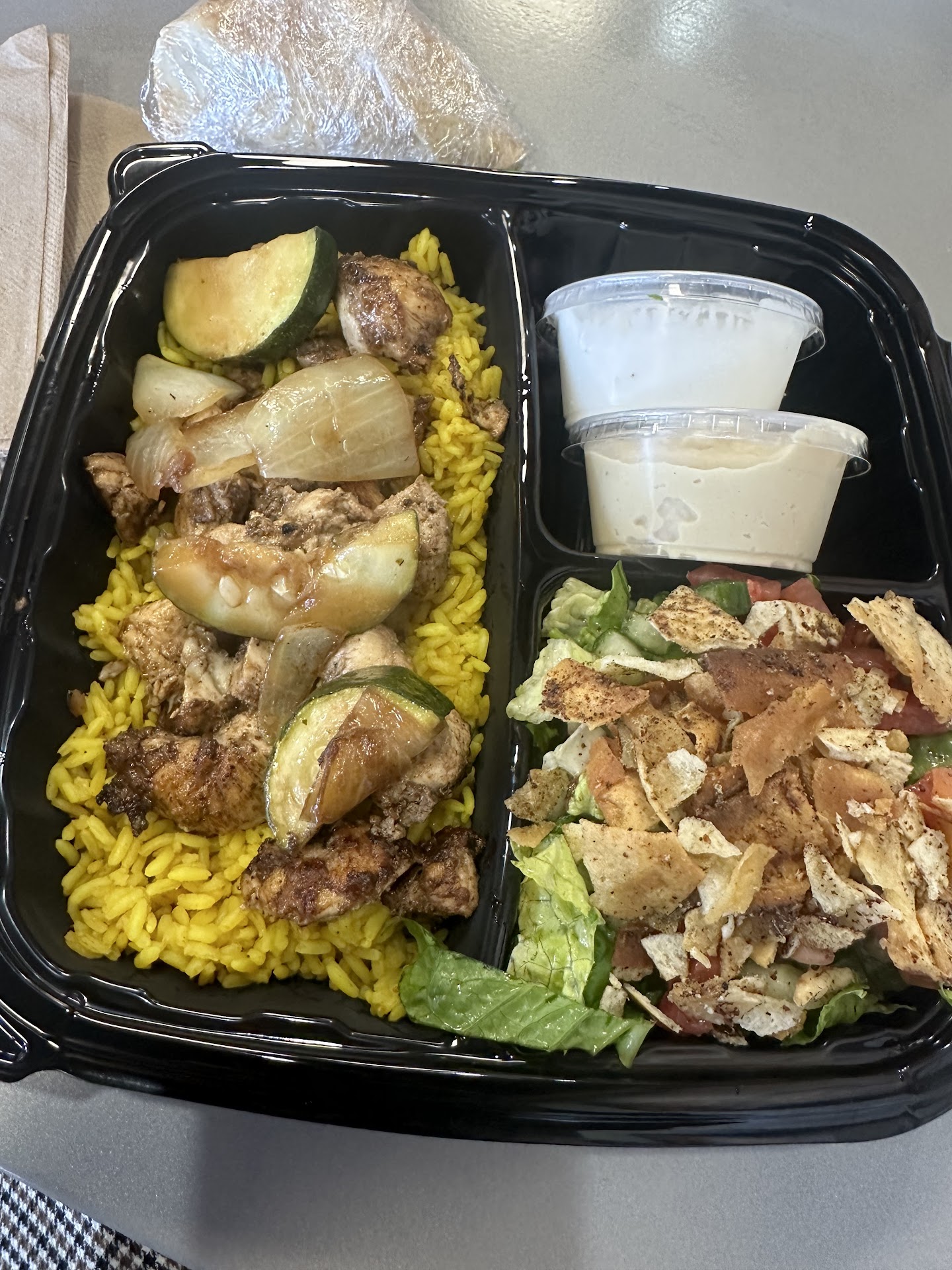 I just recently found this place while I was at the DMV in sylvania and it was super hot out and I was starving. So I went inside not sure what to order but luckily there were a found ppl ahead of me so I watched them (they got the bowl) so I figured that what I wanted. I couldn't decide on my protein and was offered a sample of them I got the chicken.Everything I was unsure about I was offered a sample to try. I paid and the coffee shop which is in the same building saw me looking at gave me a sample of the lavender coffee or tea or something like that. It was so hot I declined but got a pomegranate mixed drink OMG so good. The food was fresh and yummy and you get a lot so I ate on it the entire day. I found out they have more locations closer to me so I loved that and have been eating here more often. If you want fresh lebanese food (the rice is chefs kiss) I suggest you give a try and the drinks are...