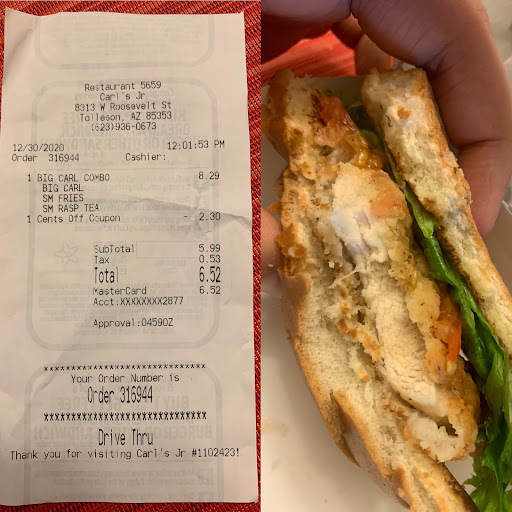 The food was mediocre, unhappy with the results; burger not hot, just warm, cheese on it when I requested none, and the core of the tomato. I understand why the drive thru is so quick; because they don't care about the dine in customer. Won't be coming back, not even though the drive thru. Carl would be so disappointed with the service in this particular Carl's Jr đ