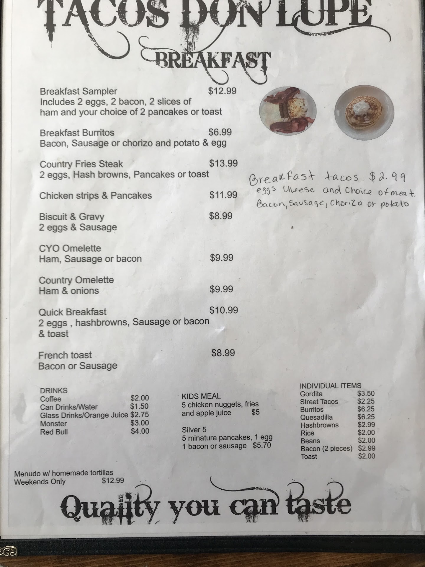 Read moreI WAS VERY impressed with the little restaurant. The food was a ⭐️⭐️⭐️⭐️⭐️ ++. The young man who served us was very polite and on his job. We WILL go back ,probably more than we should. Loved it !!!!! Highly recommend. The prices were excellent. Fajita plate $13.99 Gordito (large) $ 3.50,street tacos $2.50 with just the expected amount of cilantro was very good, too. Coca-Cola bottles from Mexico $4.00 🤔 The tea $2.00 was right on for us...