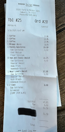 Read more1st time trying out CC's cafe and I can't say I was impressed. It was about 11am on Saturday when we arrived, they weren't super busy, but the restaurant was fairly dirty. Our Server Danielle was very personable and attentive, once we ordered our food it didn't take very long for the hot, fresh breakfast to show up. I ordered the Garden Omelet and specified, no meat. It ended up coming out with meat on it, but the waitress fixed it in no time with no problem. When it came back it was good, the veggie to egg ratio was a bit much, but it tasted good. My wife said her tacos were very bland and light on toppings, she also had the biscuit and gravy. She said that the biscuit was amazing, but the gravy had too much pepper. My sister in law had just a waffle and I could tell it was dry and hard just from looking at it and her taste buds experienced just what my eyes observed lol. I just wasn't extremely impressed with my experience at this cafe, not terrible, I can't say it was great. We might potentially try it again with...