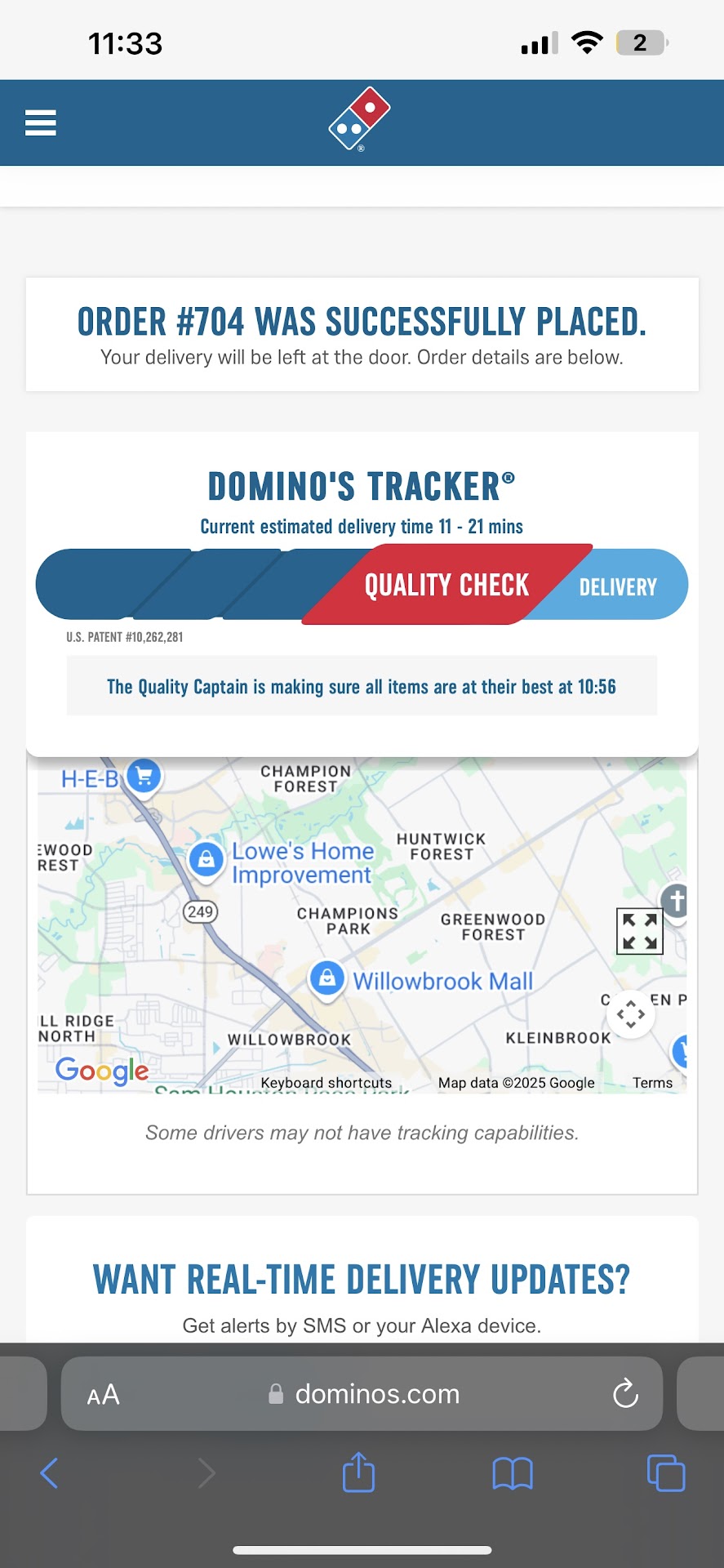 Read moreCouldn’t write a more scathing review. Ordered online, tipped 20% in advance for driver. For context this was the meal for my anniversary night out for the babysitter. Estimated 30 min out at ordering time. After an hour called and politely asked for an ETA. Was told they were short handed and approximately ~20 min more. Driver on his way back and would take our order first. Another hour passes, babysitter politely contacts me again that pizza still has not arrived. I call and immediately am told they will make it again. ??? WTH?!? They aren’t sure maybe the driver got confused. Absolutely BS, they are obviously lying and purposely didnt deliver to us next out of spite. I asked to have the order canceled. They most likely spit in the food. They nonchalantly say ok. Within a second my babysitter gets the text the order is canceled. No apology, no offer to make anything right. Will be calling back in the morning to speak to management. Absolutely no pride in their job, no customer service. Will NEVER order from Dominos again - at this point I can’t imagine how they do any business. I was never rude, did not raise my voice and they could not have been less interested in helping my children get their dinner in a timely fashion. Shameful and just...
