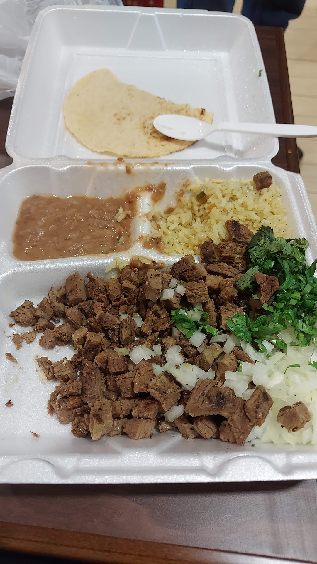 Read moreOur family and I spent over $30 for food here. It was terrible. We are visiting from Mexico so I can say this is not Mexican food, not even tex mex. The supposedly hand made tortillas have no flavor and they are so horribly cooked they crack, how does that help a taco?? So much for homemade. They told me the tacos would have refried beans and rice in each along with meat, onions and cilantro. Upon arrival, no beans and no rice. We had ordered 8 tacos so I called and they treated me like it was no big deal and I was crazy for wanting some beans and rice but, try feeding a big family, every bit counts. They didn't even apologize for their mistake. Horrible service. The fajita platter was like $10, for what you see in the picture, and it was tasteless. The meat was hard and tasteless! Oh and the salsa was so watered down it tasted like spicy water.