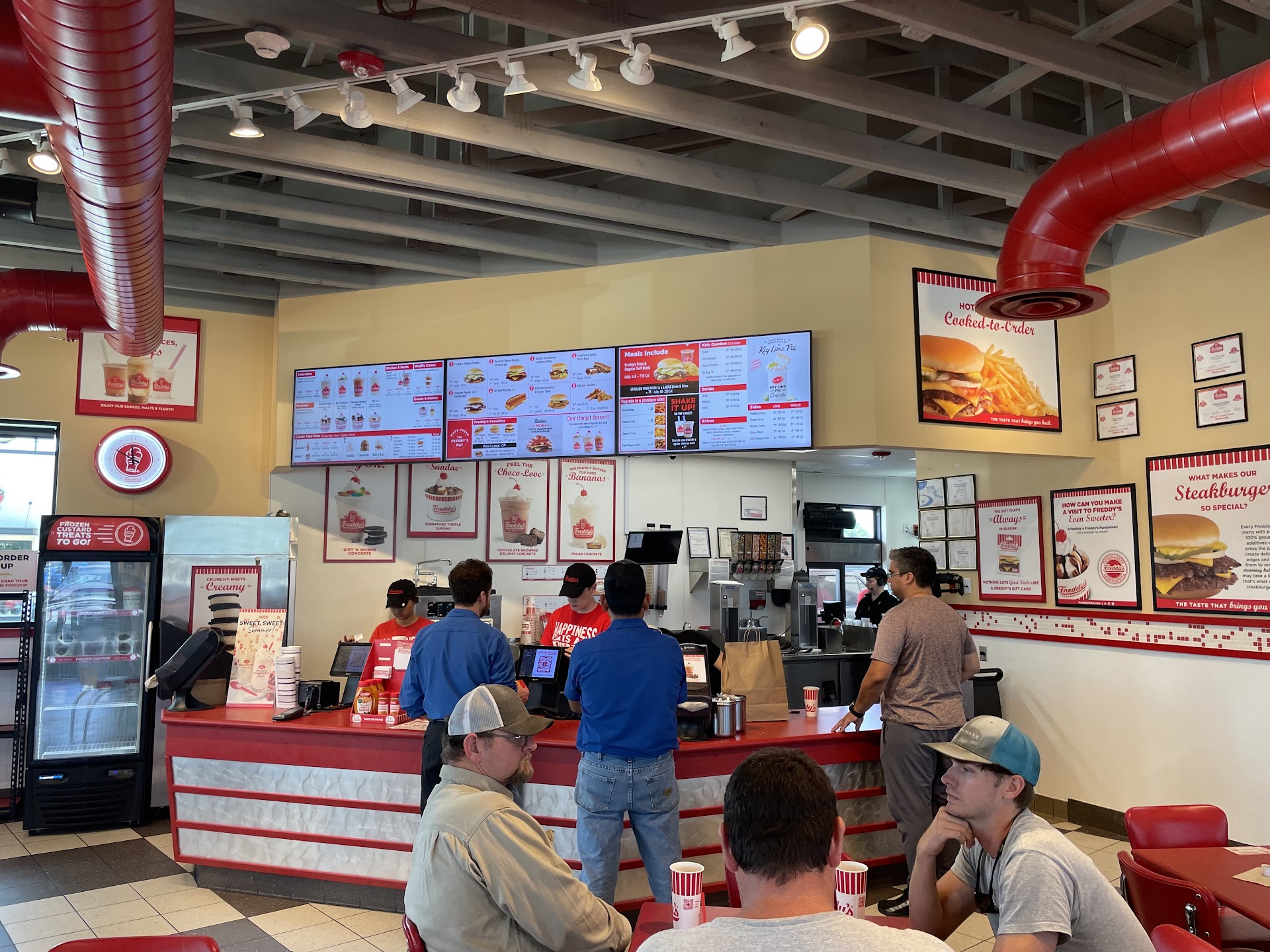 I recently visited Freddy’s and was thoroughly impressed by the outstanding customer service and quality of food. From the moment I walked in, the staff greeted me with warm smiles and made me feel welcome. The service was quick and efficient, ensuring that I didn’t have to wait long for my meal. The staff went above and beyond to make sure my order was correct and even checked in to see if I needed anything else. The food was fresh, hot, and absolutely delicious. I particularly enjoyed the steak burger, which was cooked to perfection. Overall, my experience at Freddy’s was fantastic. The combination of friendly staff, prompt service, and tasty food makes this place a must-visit. I highly recommend it to anyone looking for a great fast food experience! Thanks so much Steve for making me and my families visit one...