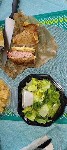 Read moreThis is the second time I've eaten here. Today I opted for the salad/soup sampler so I could try more than one food. I wasn't sure about getting hot soup during the summer in Texas, but I enjoyed the deep creamy flavor of their potato soup. The chicken salad with grapes and slivered almonds is good. The fresh fruit bowl with melons, pineapple and grapes is a nice blend but most of the melon bites weren't quite ripe enough so they were a little too firm. Mango tea is cold and refreshing. I also got a cherry turnover, it was a nice flaky pastry but the cherry filling tasted like canned pie filling. They have a beautiful pastry case with 40 very yummy looking pastries to choose from. The drawback is that it's a few feet past the register where you place your order and pay for it. So the customers behind you have to wait while you step away from the cashier to pick the pastry/dessert you want and then you return to the cash register to tell them what you want and to pay for it. Maybe it's just me not wanting to inconvenience the other people in line, but I didn't feel like I could take the time to look at all the options to choose which one I want the most. It's set up like a cafeteria so that after you pay, they give you a tray that you take with you as you walk down the line where they plate your food, then you fill your glass from the sofa fountain and carry your tray to a table. It has a spacious dining area and I enjoy their food but it feels disjointed with the cash register set up...