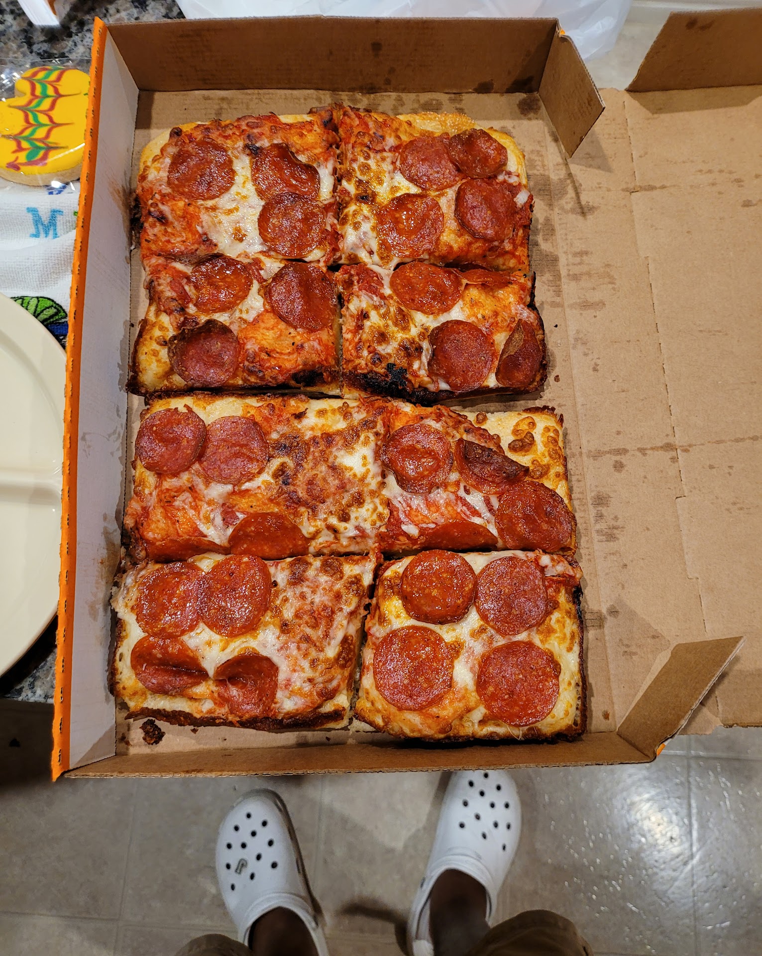 About five minutes later, she placed the pizza in the pickup portal and told me it was ready, which felt unnecessary since I was the only one there and clearly waiting. I retrieved it, went to my car, and saw that two of the three pizzas were made incorrectly.