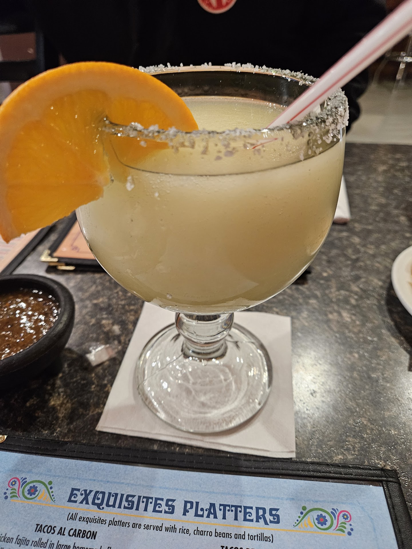 Also, drinks were good. I asked the waitress what margarita she recommended and went with that. It wasn't huge like I expected based on the menu description, but they made up for it by making it plenty strong. I definitely felt I got my money's worth (not sure I felt much else by the time I hit the bottom đ€Ł)! A couple of the kids got virgin daiquiris, and one parent got a full octane one, all three were quite happy!