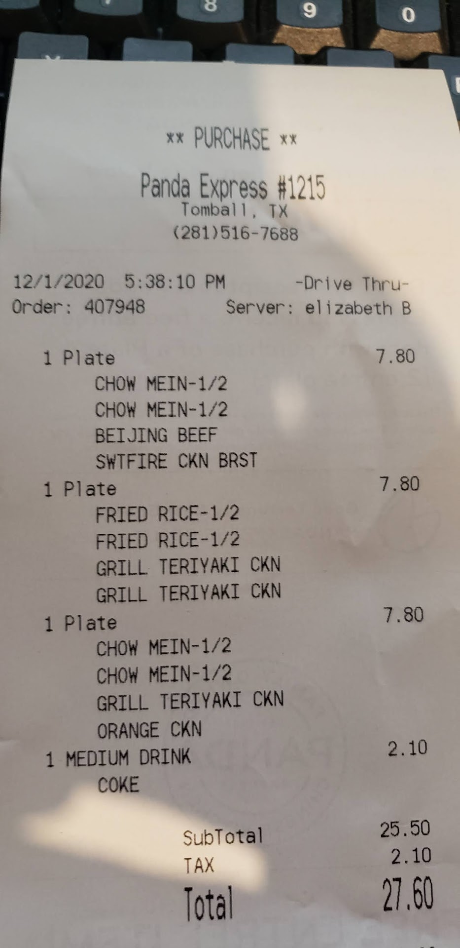 Read moreI decided to stop by for lunch today because I didn't feel like cooking today. I pull-up to the drive thru to place my order. Hello, what can I get for you? Hello! Can I get the bigger plate? Yes. The bigger plate. Chow main or rice? Chow main, please. For your three entrée? Orange chicken, honey sesame seed chicken. "She rings me up for the big plate." And the teriyaki chicken. Oh, you want to the bigger plate. Yes ma'am, please. Any thing else? Does it come with a drink because I don't want a drink? What size do you want? Well what size does it come with? It doesn't come with a drink. Okay cool i don't want a drink. Total is $12.86. I do want two egg rolls. I was only asking if the order comes with a drink. "She continues to ignore me." I pull up to the drive thru window and the lady that was manding that station was completely different from the on taking orders. She was nice and attentive and made sure my order was correct. She deserves a four star rating but the lady that took my order, the score reflects her attitude today. You guys need to tighten up on the customer...