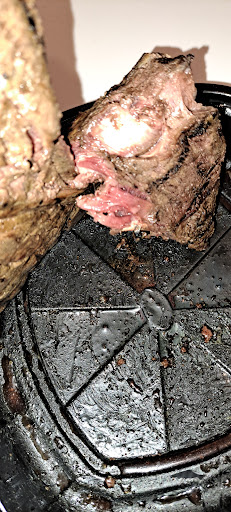 When I got home to eat my Porter House I was alerted to the fact that my daughters steak was rare instead of M. Still, no big deal- I turned on the grill and cooked hers up a temp. It's when my mother cut into her steak and said it was "RAW" that got me worried. I thought she was being hyperbolic but when I cut into my steak I noticed that it was both of our steaks that were RAW. Not rare, RAW!!! IF you look at the top of my steak it's got grill marks so it looked cooked on the outside but raw on the inside. I thought maybe we accidentally got Pittsburgh Rare which I could have dealt with, but it was more like Pitts Raw and when you flipped over the steak the bottom was barely even cooked. ....I couldn't beleive they let 2 steaks like that leave the kitchen!