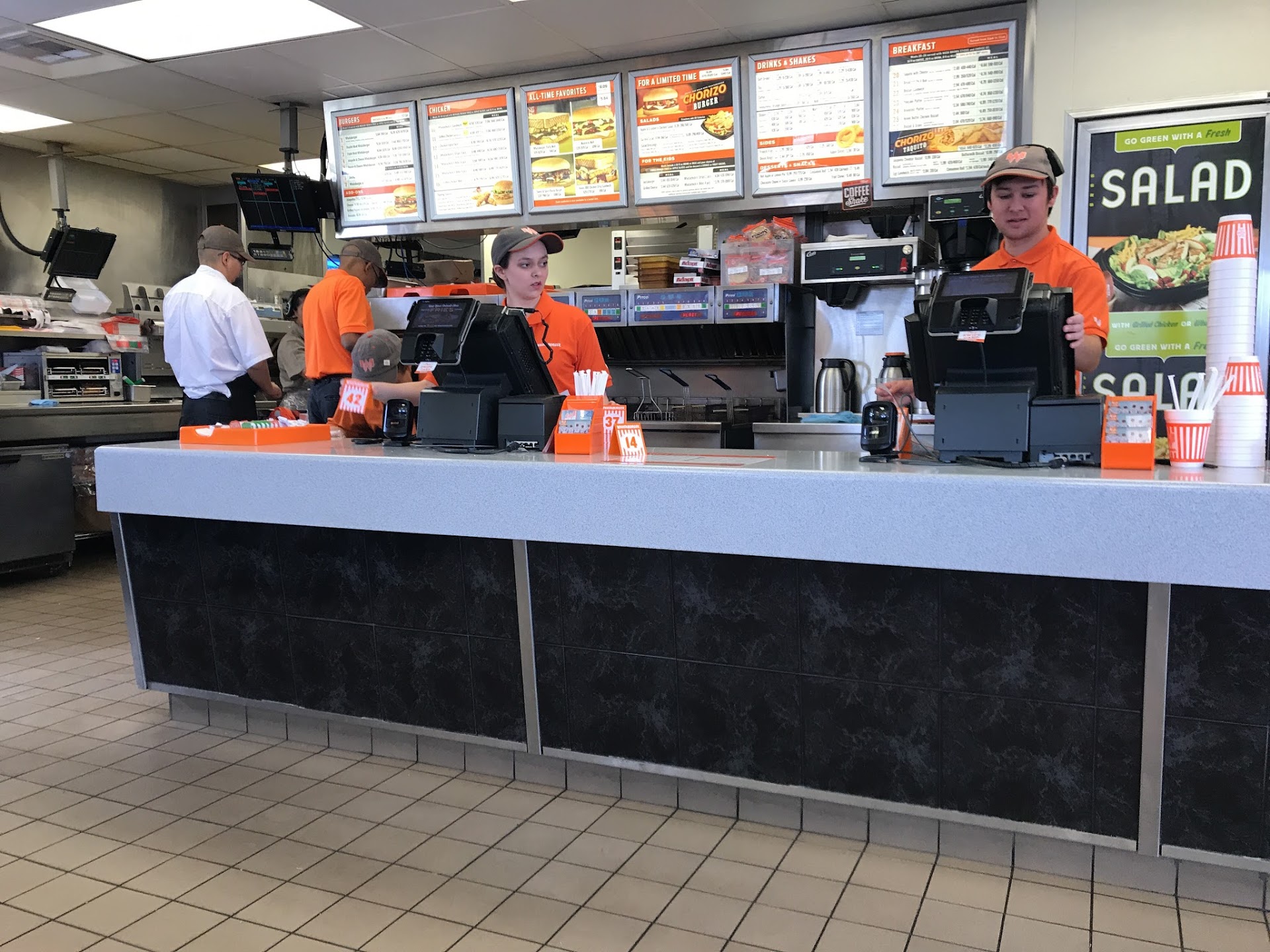 Ā Ā Ā Read morePlace an order on the app overnight. Restaurant had about 5 employees, maybe 4 lobby orders, maybe 4 drive through orders. My online order was forgotten about, said there would be another 20 minute wait, I'm sure it would be closer to 30. Employees looked clueless and moved very slow and unmotivated, I mean really slow, like they were on drugs, they were trying to grab chicken strips with tongs and were having a very difficult time picking up one, like using multiple quarters to pick up a prize with a claw machine that kept slipping out the claw. They were that inept. I blame the management for hiring such a terrible overnight staff, every single one of them looked useless, they said they were not good at their jobs because they had only been there three months... three months... how long do you need to get good at running a fast food joint, it's three months, not three weeks. And to cancel an app order, they told me I had to call customer service... it's fast food, for Christ's sake, not computer problem. If you can't cancel an app order normally you shouldn't have an app at all. I swear, once Chicago bought out Whataburger, the restaurant chain...